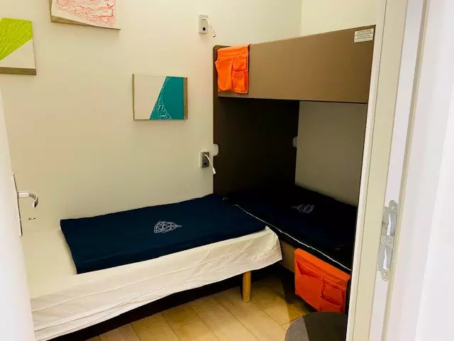 Cabin room equipped with 1 single bed and 2 80cm bunk beds (the upper bunk is not suitable for children under 6 years old)