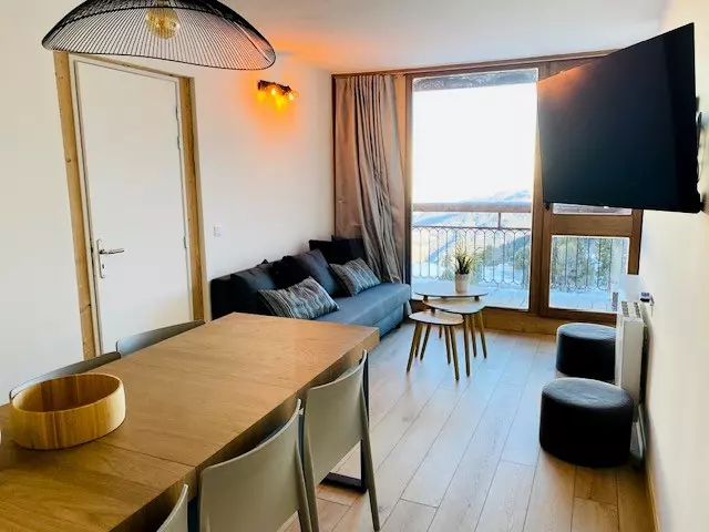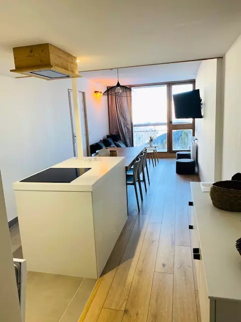 Renovated 3-room apartment of 56 m2 for 6/7 people, located on the 7th floor of the Varet 2 residence, balconies facing North/North-West with view of Mont Blanc