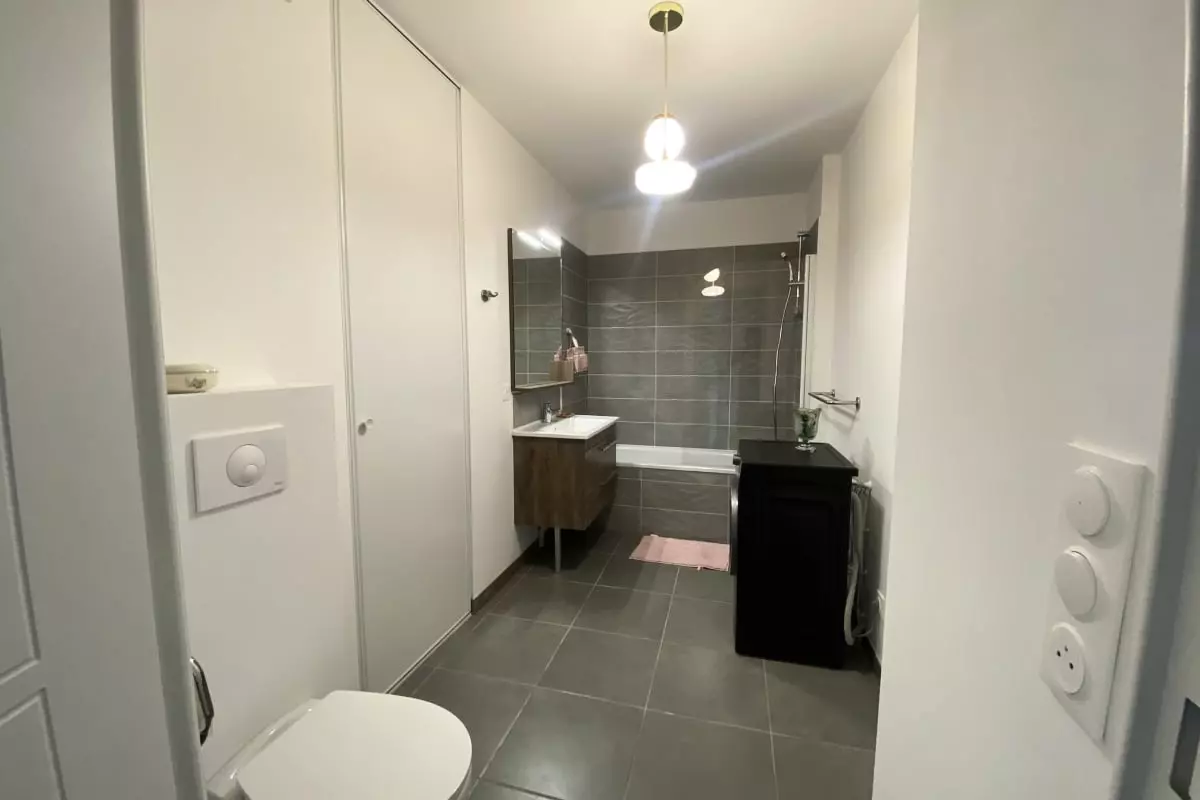 The apartment features a furnished terrace where you can relax and enjoy the fresh air. Additionally, you'll benefit from a private underground parking space and a secure bicycle storage room.