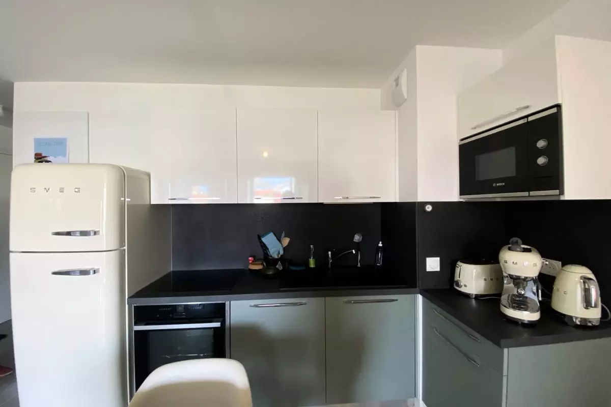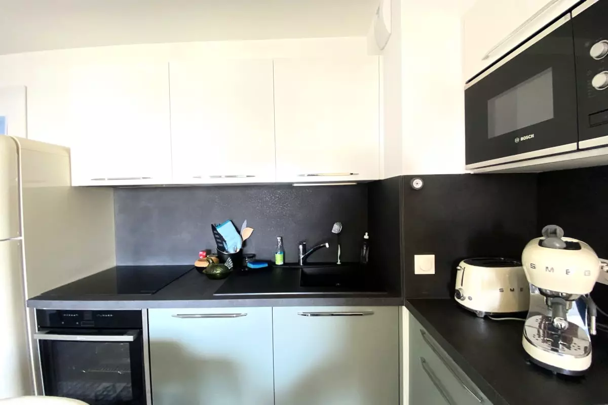 Located on the floor of a secure building with an elevator, this apartment is ideally located behind the train station. It offers all the comforts necessary for a pleasant stay.