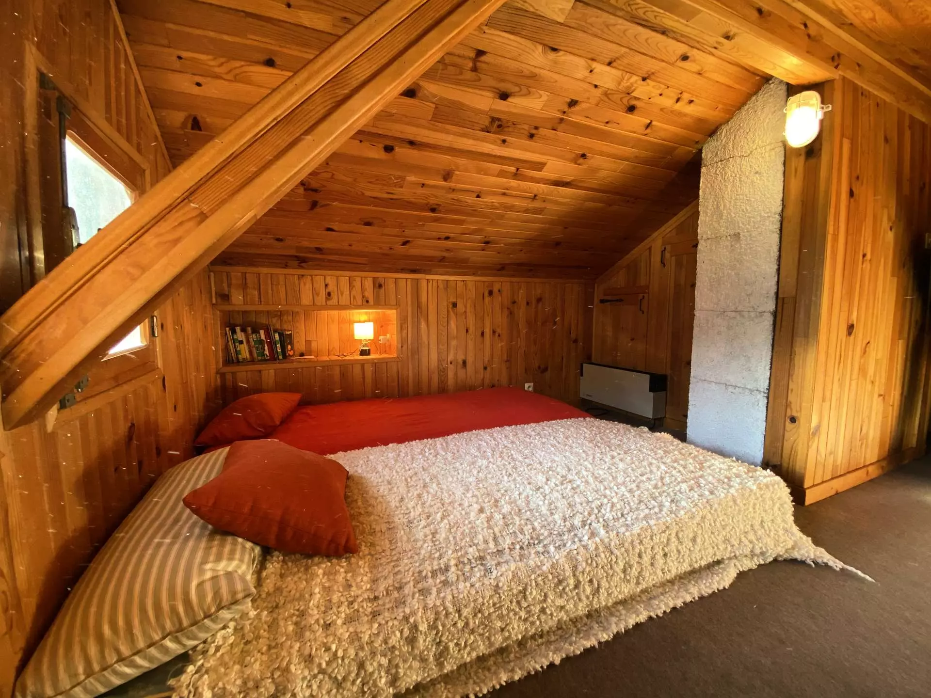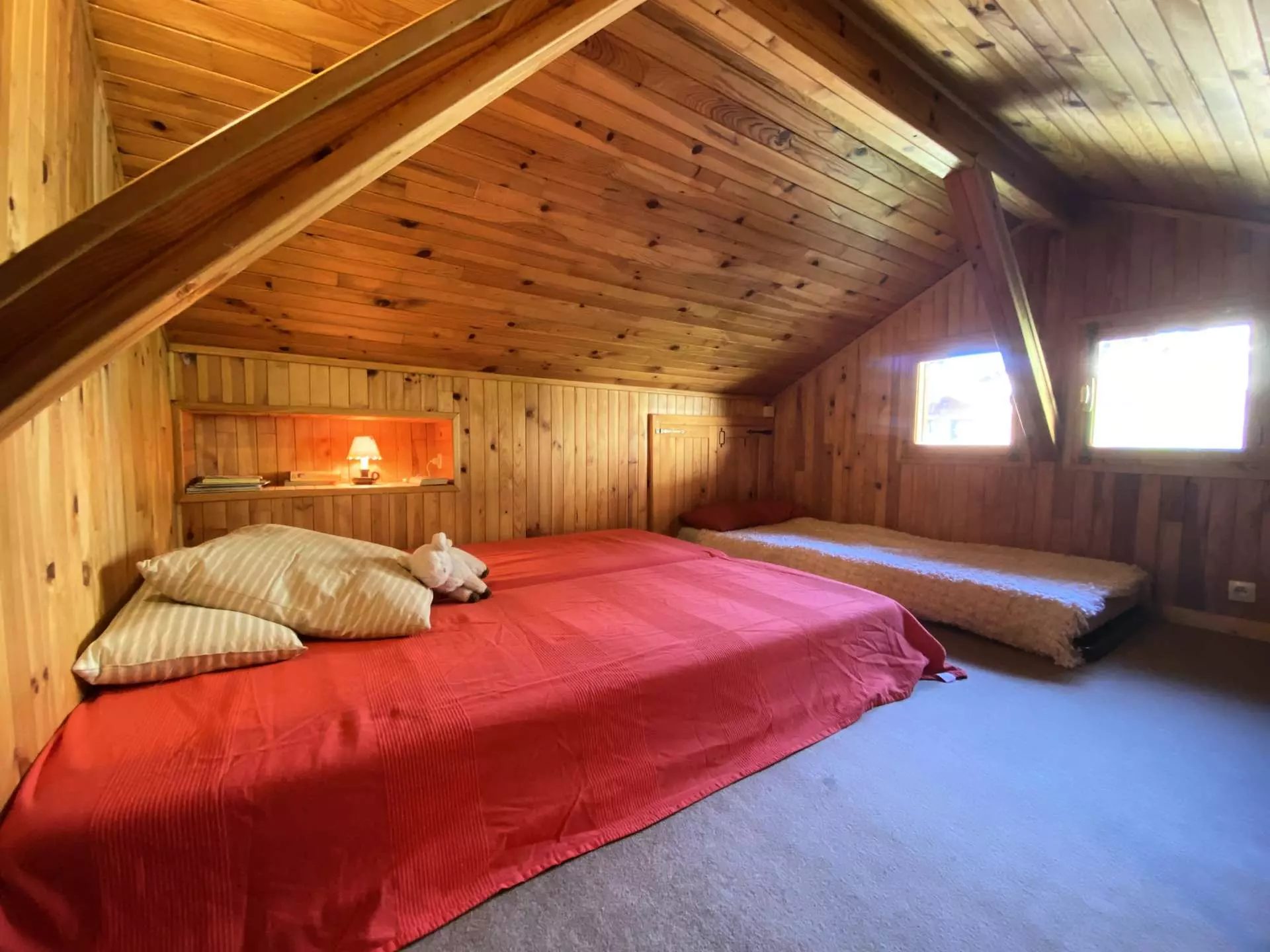 Access to the top floor under the slope via a narrow and fairly steep staircase (1.65 m maximum at the ridge) to 2 small bedrooms, ideal for children aged 6 to 12 (like small cabins).