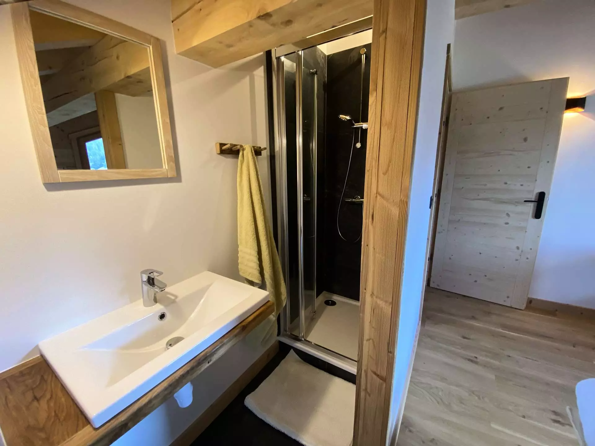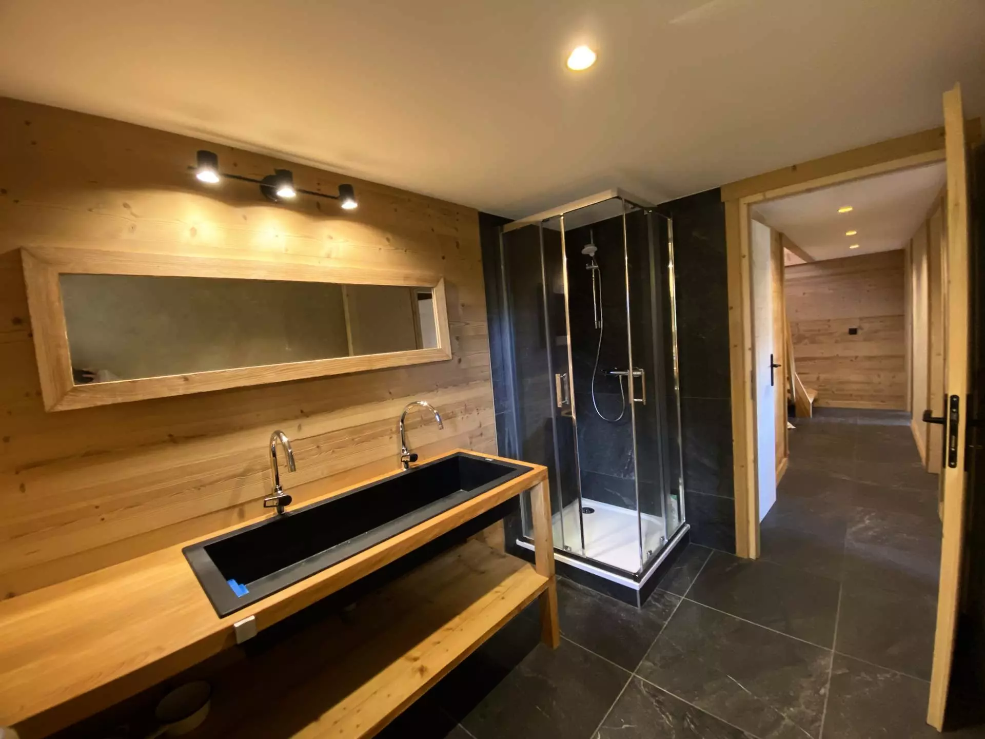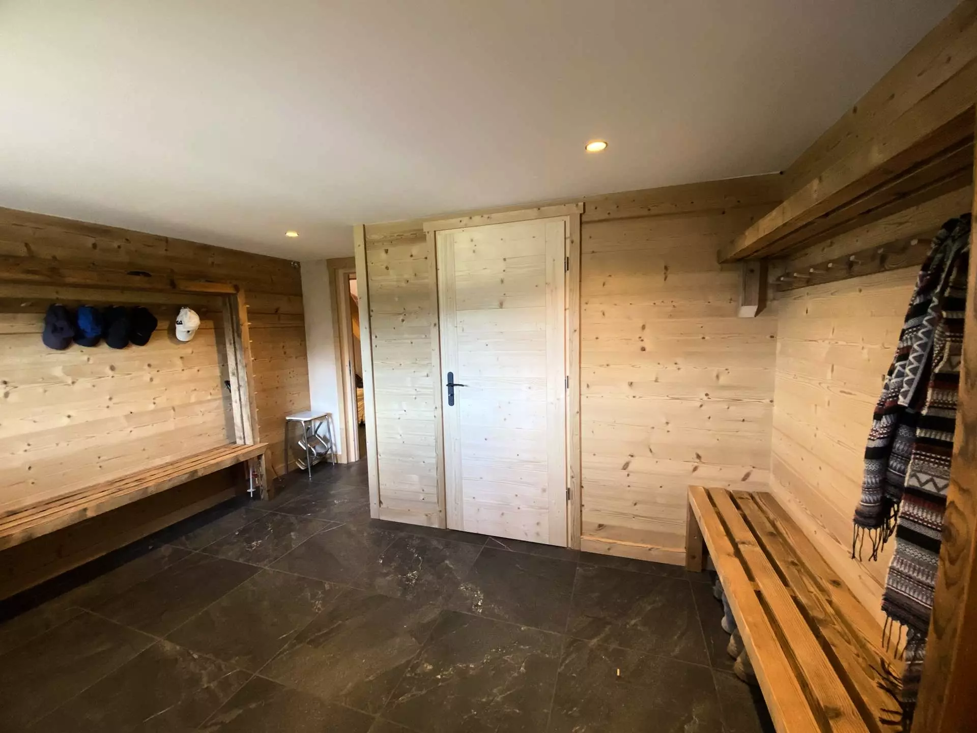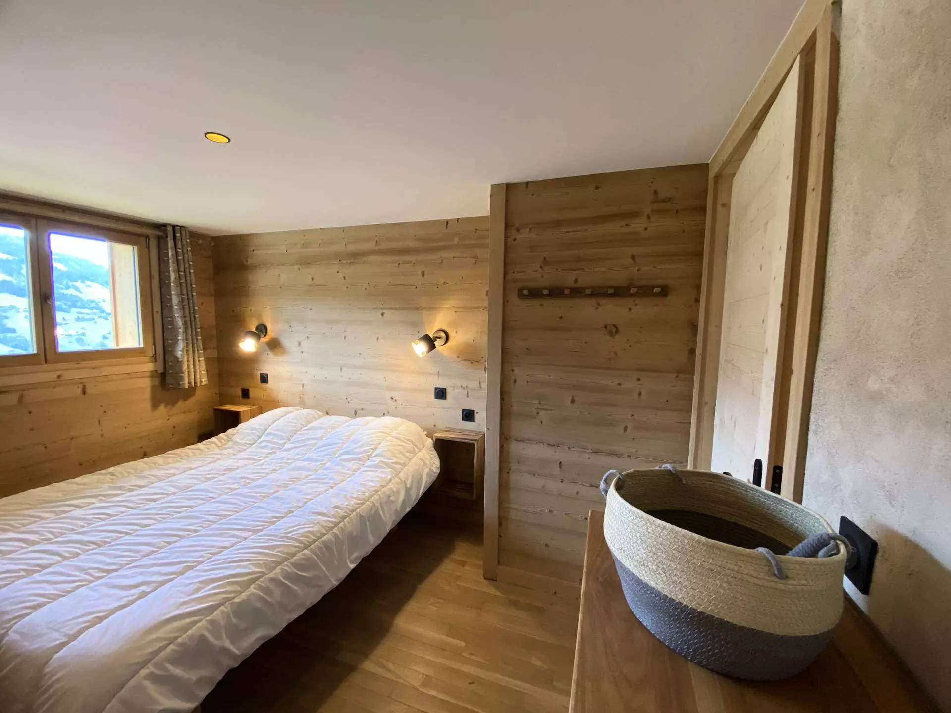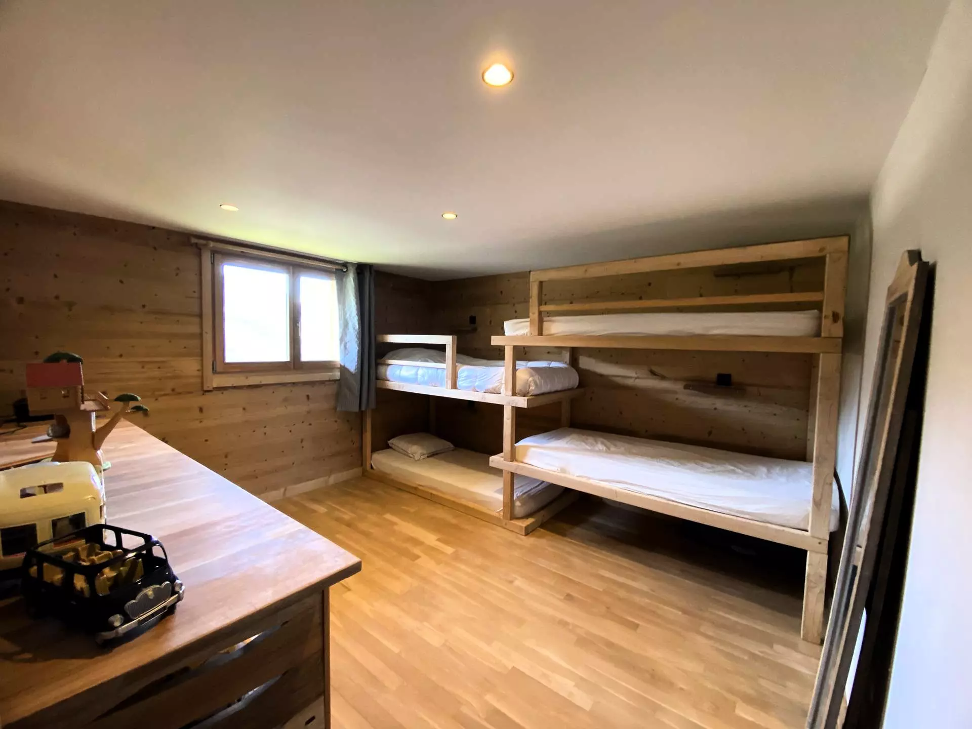 On the ground floor: a ski room, 1 bedroom with a 160 cm bed, 1 children's bedroom with 4 90 cm bunk beds, 1 bathroom with shower/WC, 1 WC.