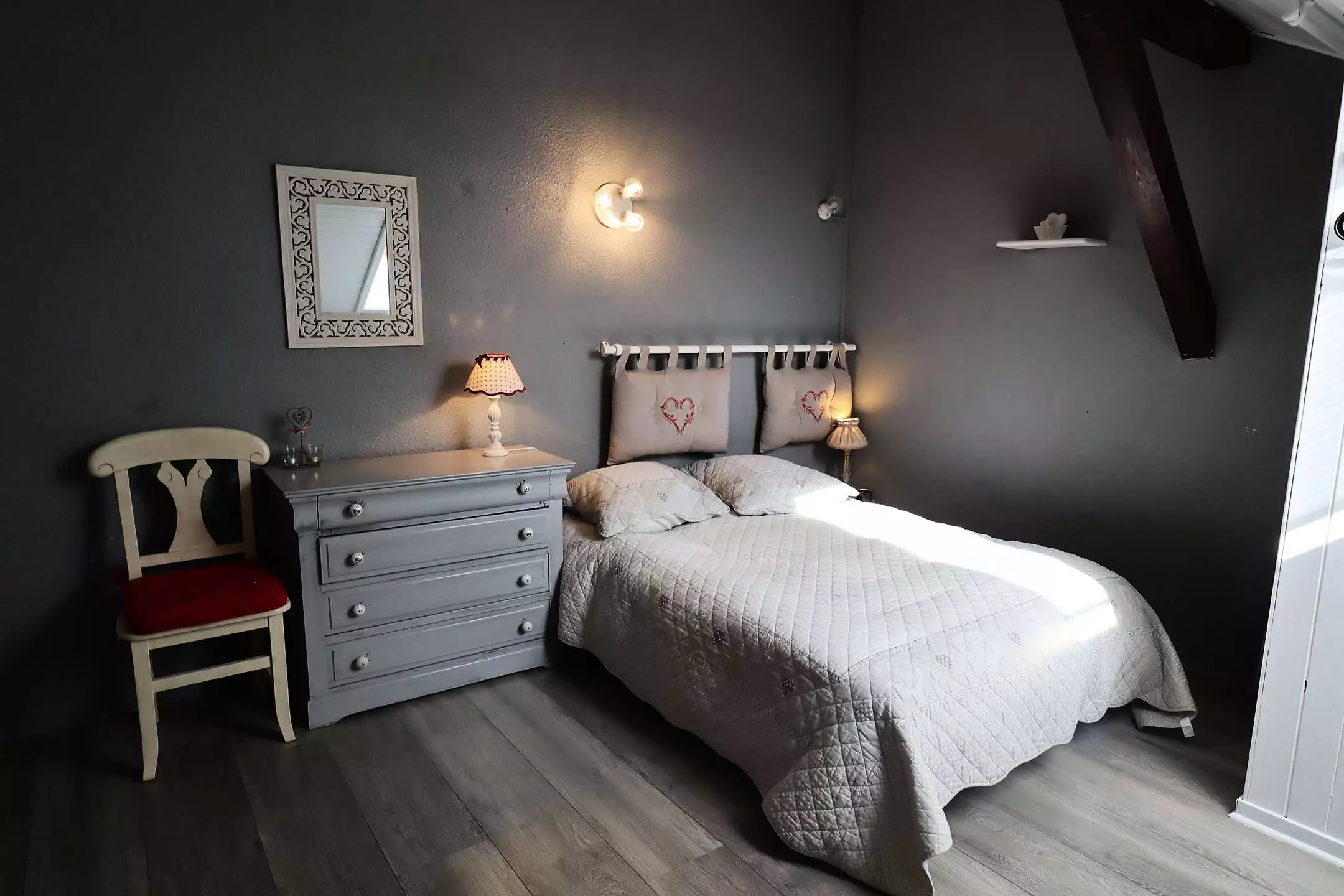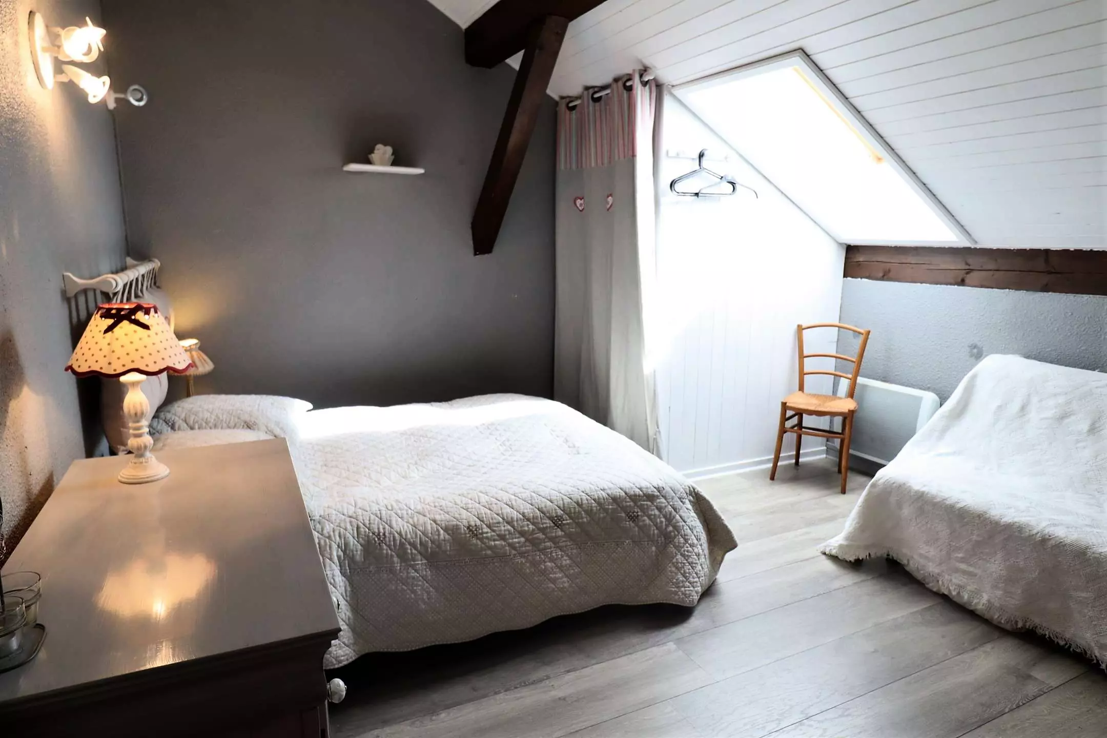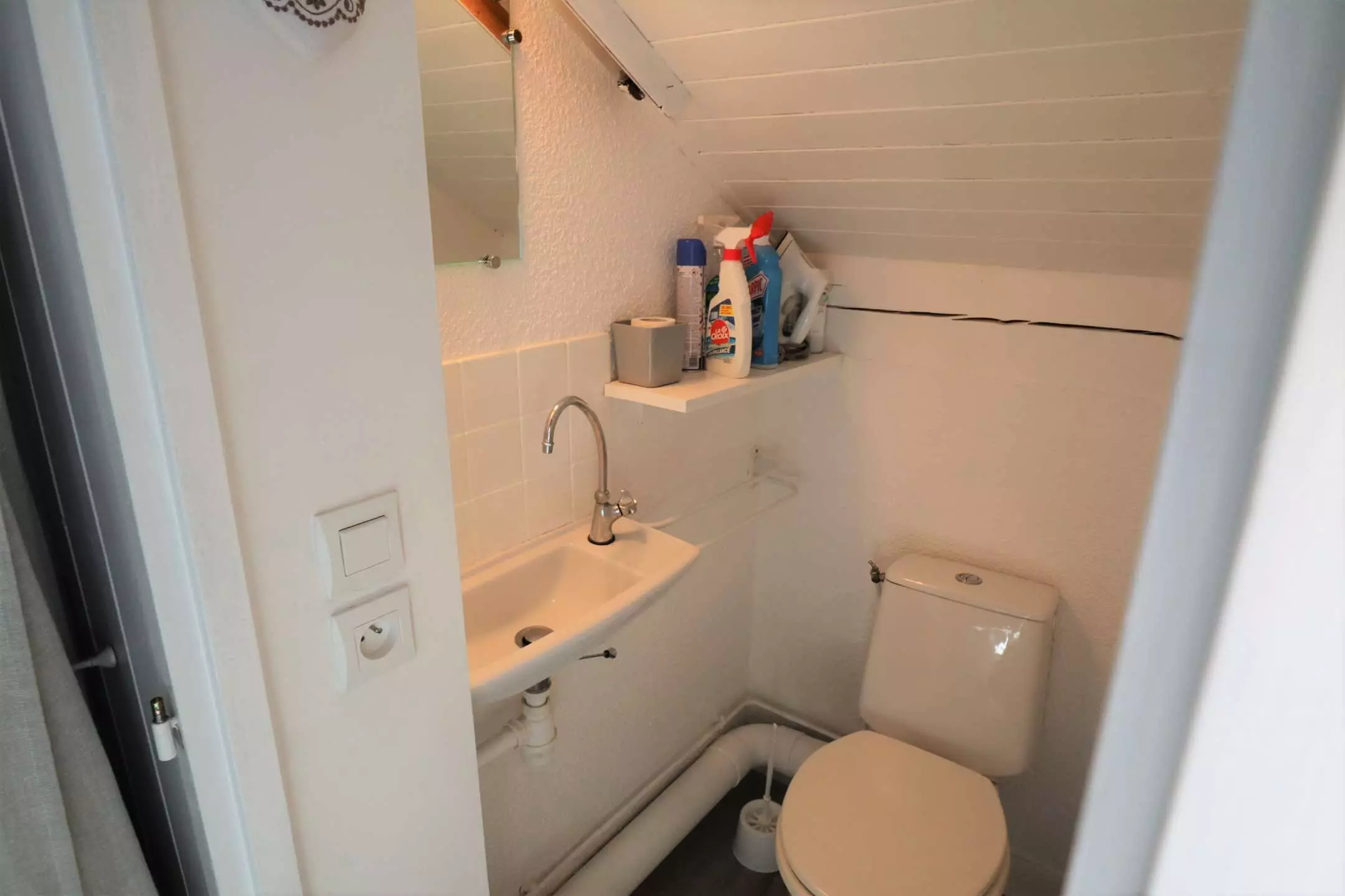 Upstairs, a pretty, closed attic bedroom with a Velux window offers a 140 x 190 cm bed and a 140 x 190 cm sofa bed. A small toilet/sink area is also upstairs. Duvets.