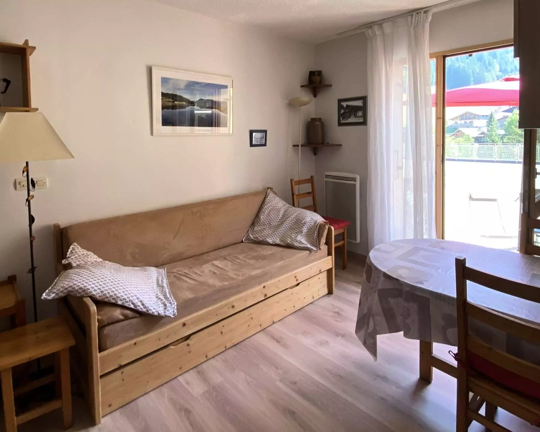 Very functional apartment of approximately 23 m² on the ground floor of the 70-apartment Val Blanc 2 residence - Ideal location: walking distance to skiing and the village - residence with shared swimming pool in summer* - South facing - entrance - Living room with pull-out sofa - equipped kitchenette (dishwasher) - Closed bedroom with 1 double bed. - Bathroom - separate WC - TV - south-facing terrace with garden furniture - Residence parking. Ski locker.