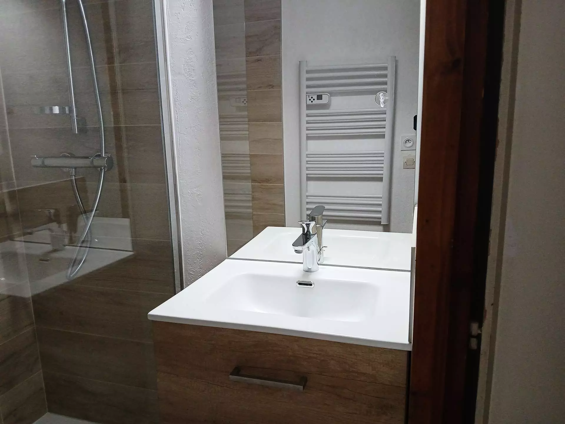 Entrance to closed cabin sleeping area with bunk beds 90x190 - Living room with sofa bed - TV - equipped kitchenette (dishwasher, raclette machine, fondue set and kettle, filter coffee maker, toaster) - Bathroom (shower) - Separate WC. - Small bedroom with 1 bed 140 x 190. - large west-facing balcony - unobstructed view.