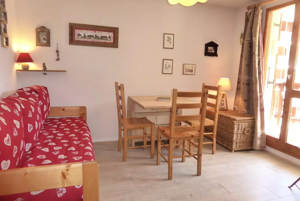 Very functional SOUTH-facing apartment of 26m² WITH BALCONY on the 1st floor with elevator - Ideal location: walking distance to skiing and the village - residence of 70 apartments in Val Blanc II, with communal swimming pool in summer*. Very well equipped, it consists of an entrance - a bright living room with a 140 x 190 pull-out sofa bed opening onto a south-facing loggia balcony with an open view - equipped kitchenette (dishwasher, microwave) - closed bedroom with 90 x 190 bunk beds - TV - ski lockers.