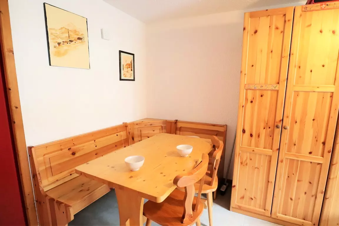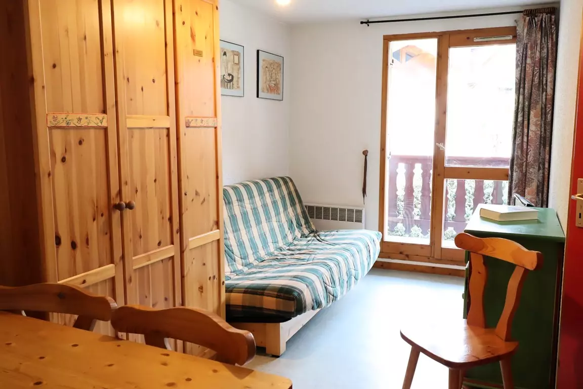 Very functional and charming 28m² apartment - Ideal location: walking distance to skiing and the village - residence of 70 apartments in Val Blanc II with shared swimming pool in summer* - cabin entrance with bunk beds - living room with sofa bed - TV - closed bedroom with 1 double bed - equipped kitchenette (dishwasher) - Bathroom - separate WC - large east facing balcony with garden furniture - village view. 1st floor with elevator.