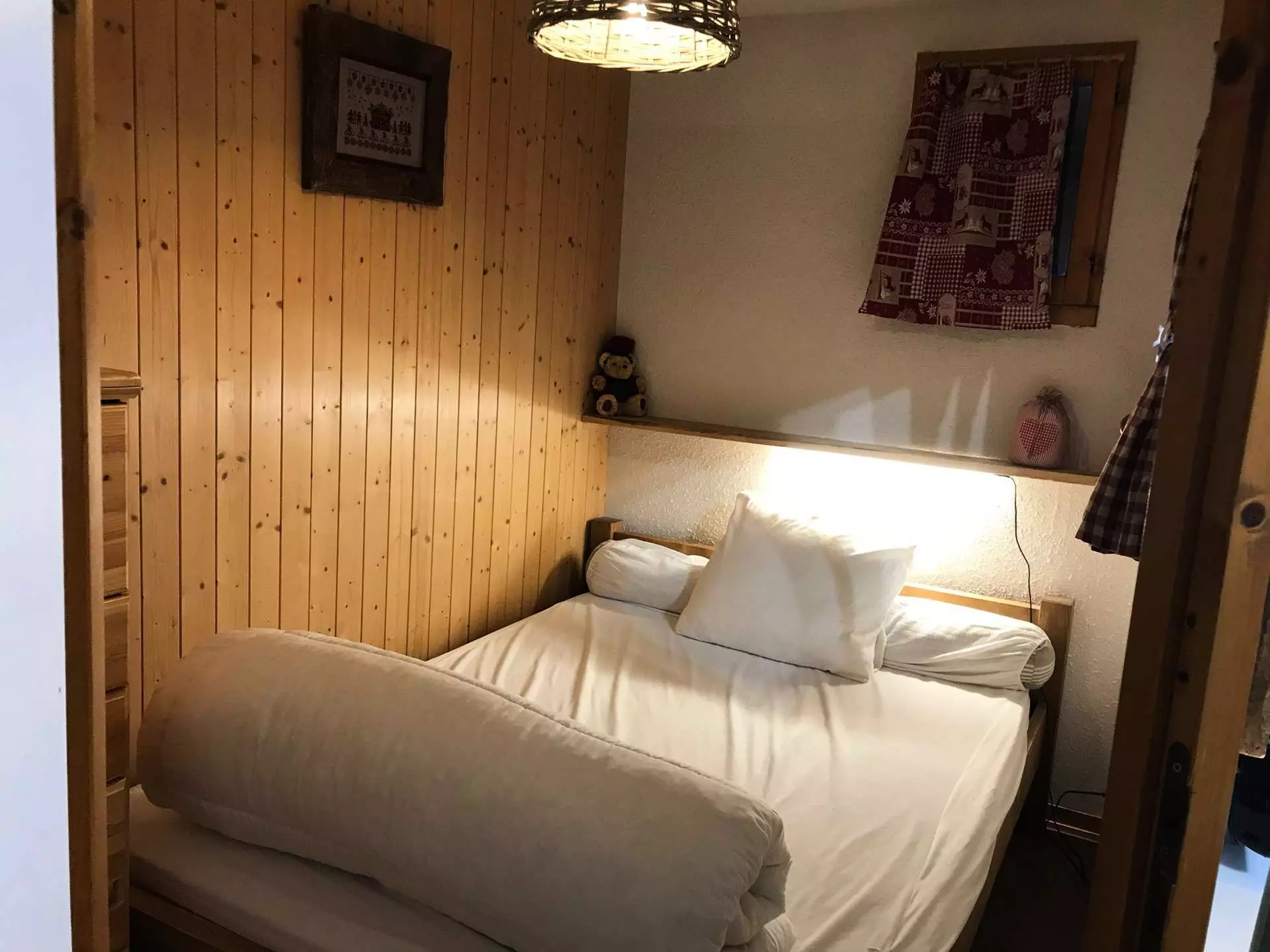 Entrance with a closed cabin with 2 single bunk beds - pretty living room with equipped kitchenette - 2 person sofa - TV - LV - large East balcony, equipped with garden furniture to enjoy the view of the village and the peaks - 1 small bedroom with 1 double bed. - Bathroom - separate WC - free parking - elevator.