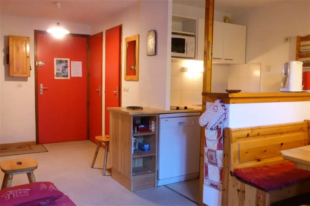 Ideal for families, very nice 2-star duplex for 6 people. View of the peaks and mountain pastures. Elevator level 4 - 8 people maximum (6 + 2 babies or small children) 40m² - private swimming pool in summer* - BRIGHT - living room with very well-equipped US kitchen: Dishwasher - Washing machine - Oven and microwave - WC - Bathroom. Upstairs: 2 bedrooms, 1 of which is large with 2 bunk beds 90 x 190 + 1 bed 140 x 190 - 1 bedroom with 140 x 190 beds (velux) - 140 x 190 sofa bed in the living room - Large west-facing loggia - ski locker - residence parking. Residence with 70 apartments. Small pets allowed.