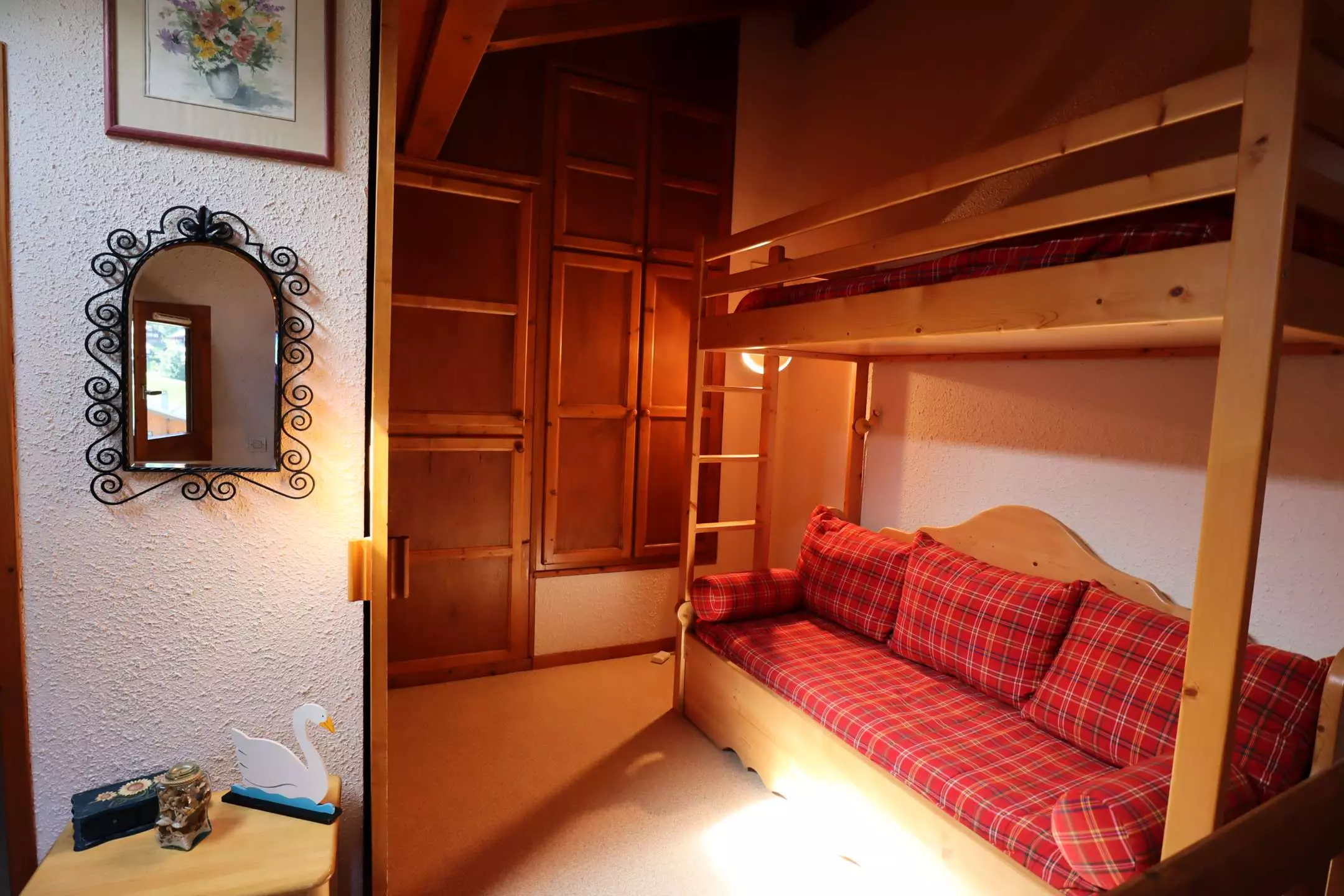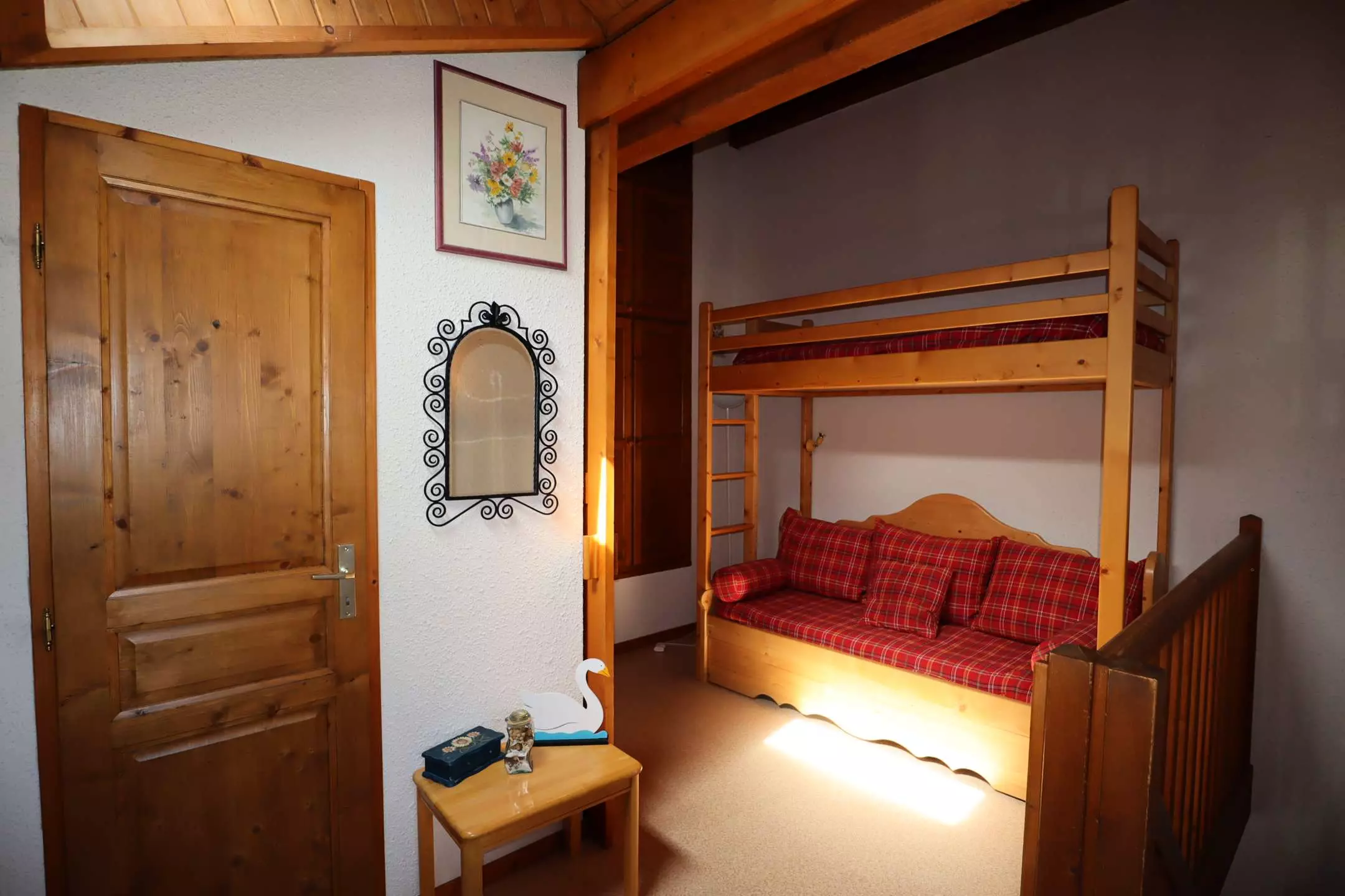 Make the trundle beds into 2 separate beds or 1 double bed according to your habits, under the beautiful light of the skylights in the 2 mezzanine bedrooms.