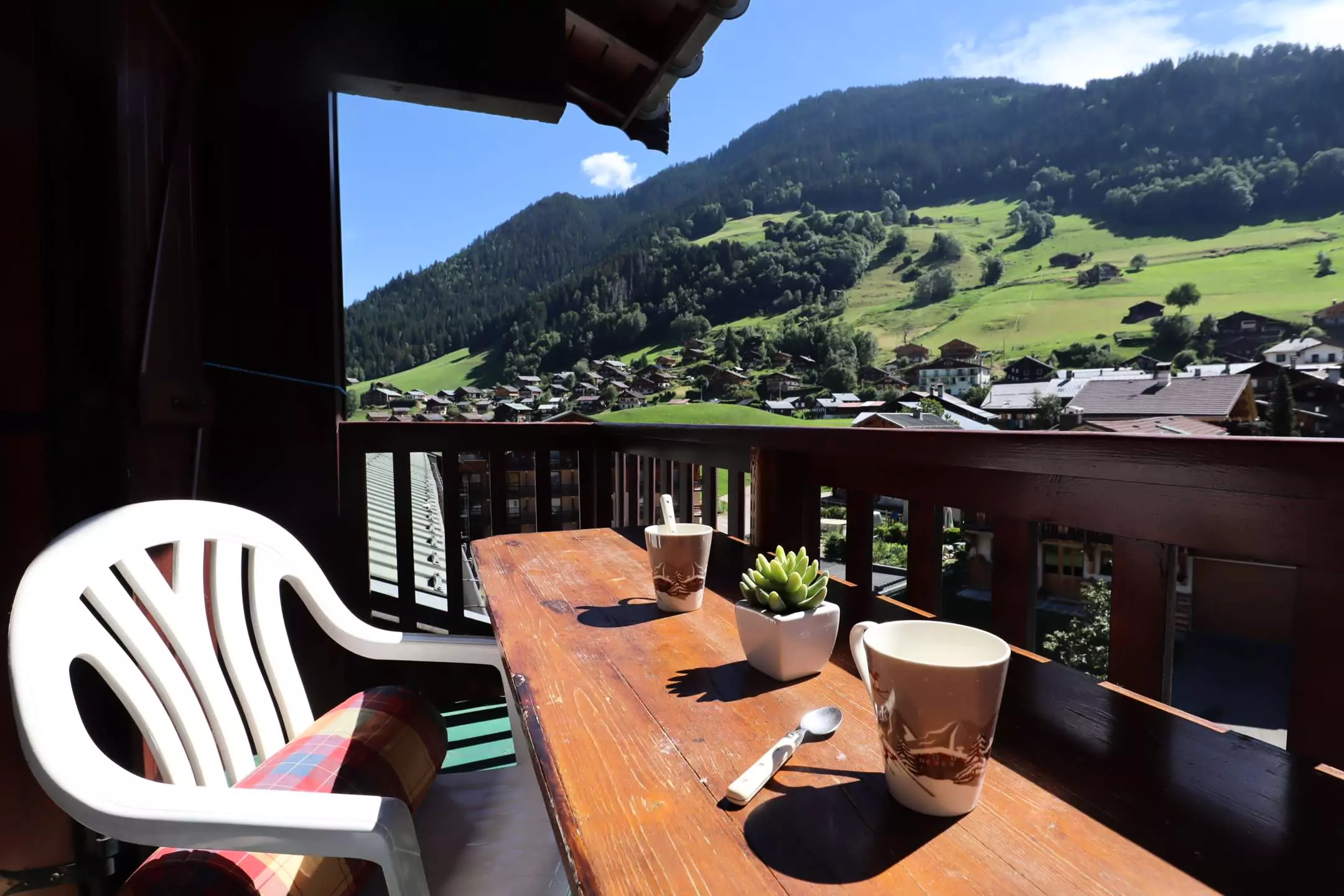 Enjoy them on the 6 m² terrace facing due east with a view of the village and the 2108 m of Roche Parstire.