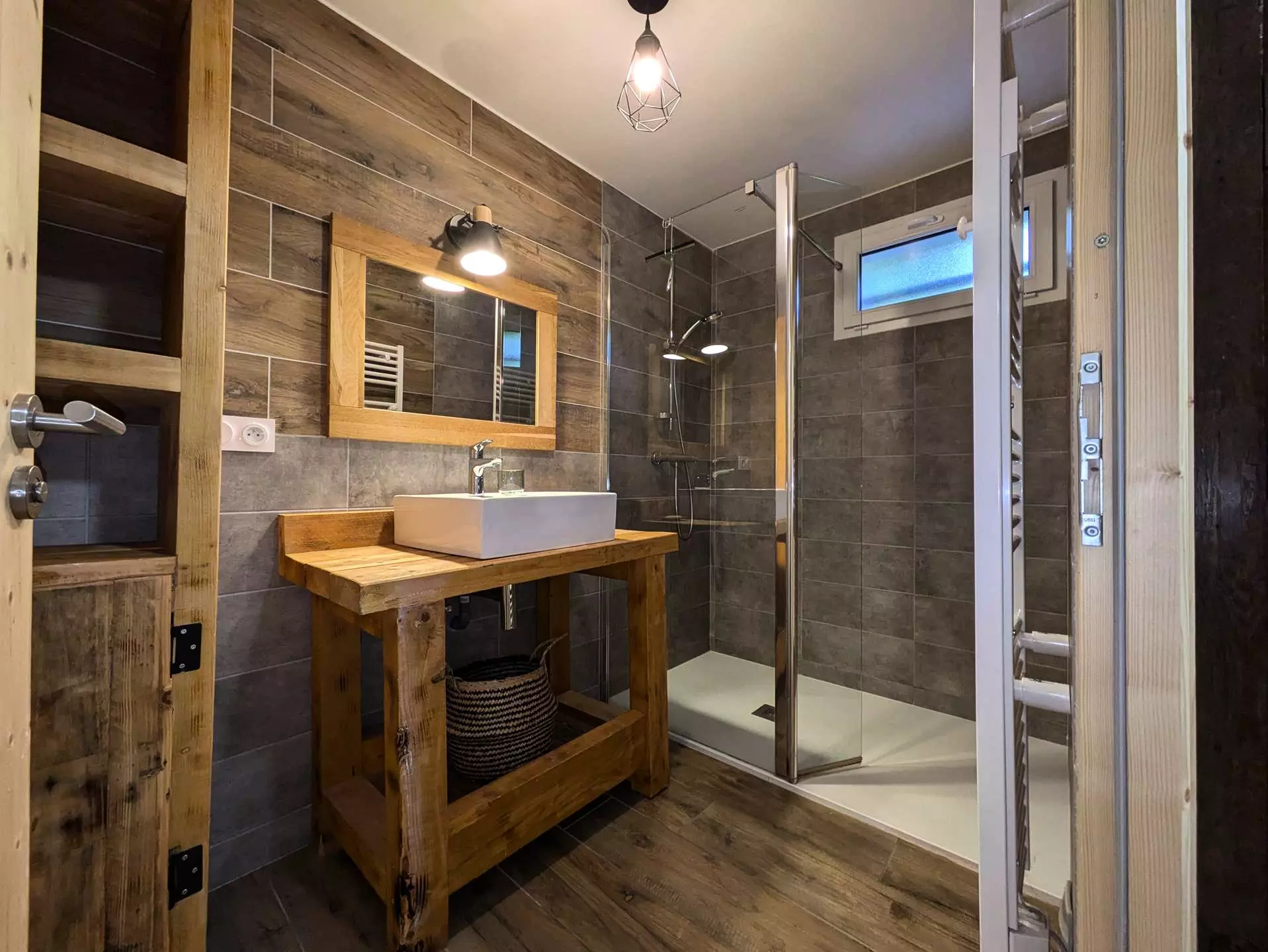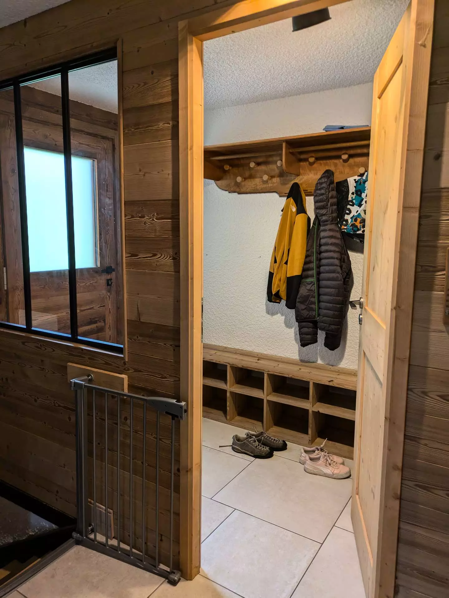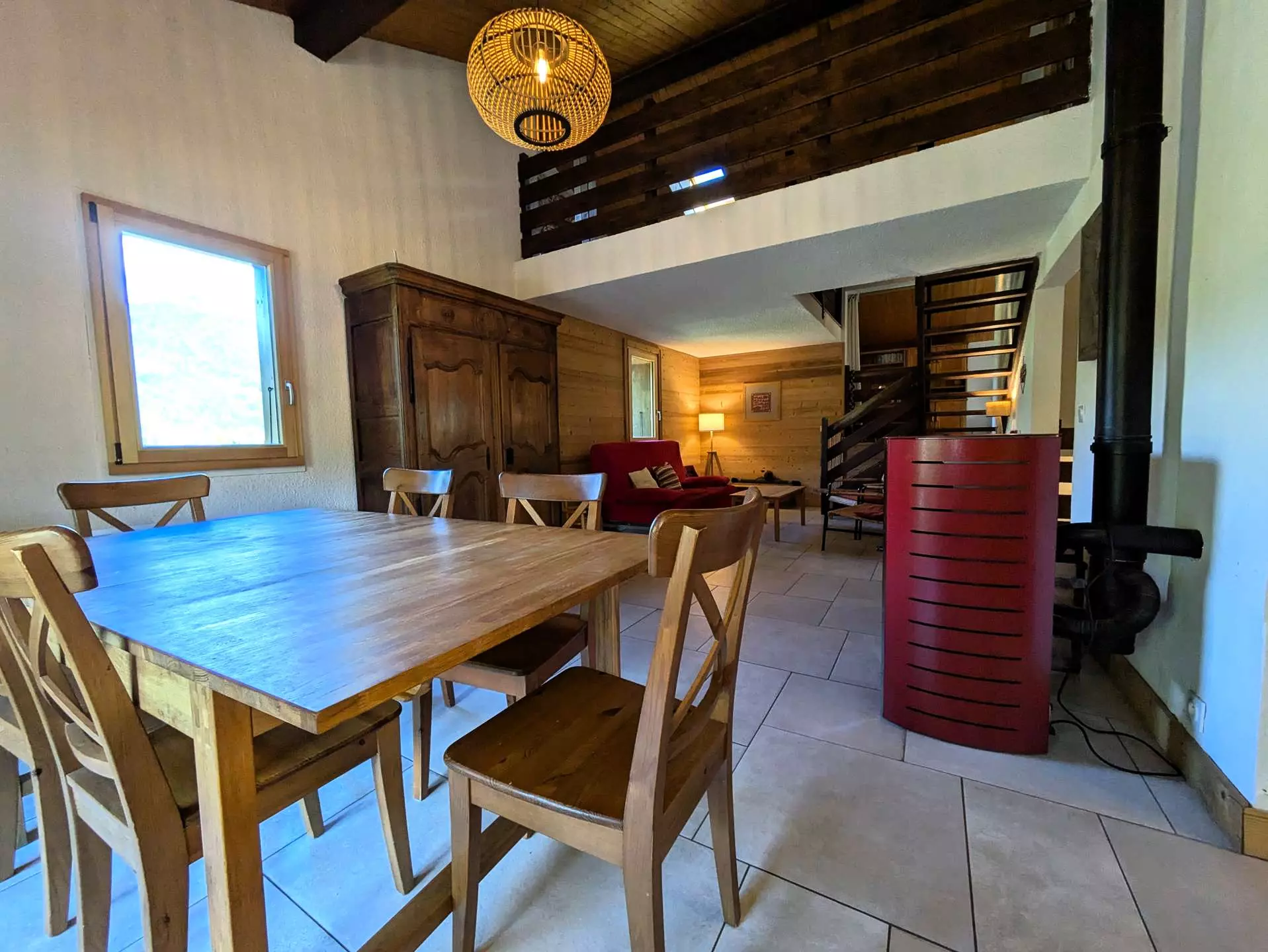 Level 1: A drop-off entrance allows you to leave your shoes and jackets. Then you enter directly into the living room / kitchen and dining area. Very beautiful living room around the stove (pellet). The L-shaped kitchen with a central island is very well equipped (oven, microwave, kettle, Nespresso + filter coffee machine, toaster, crepe maker, fondue maker, raclette maker, etc.).