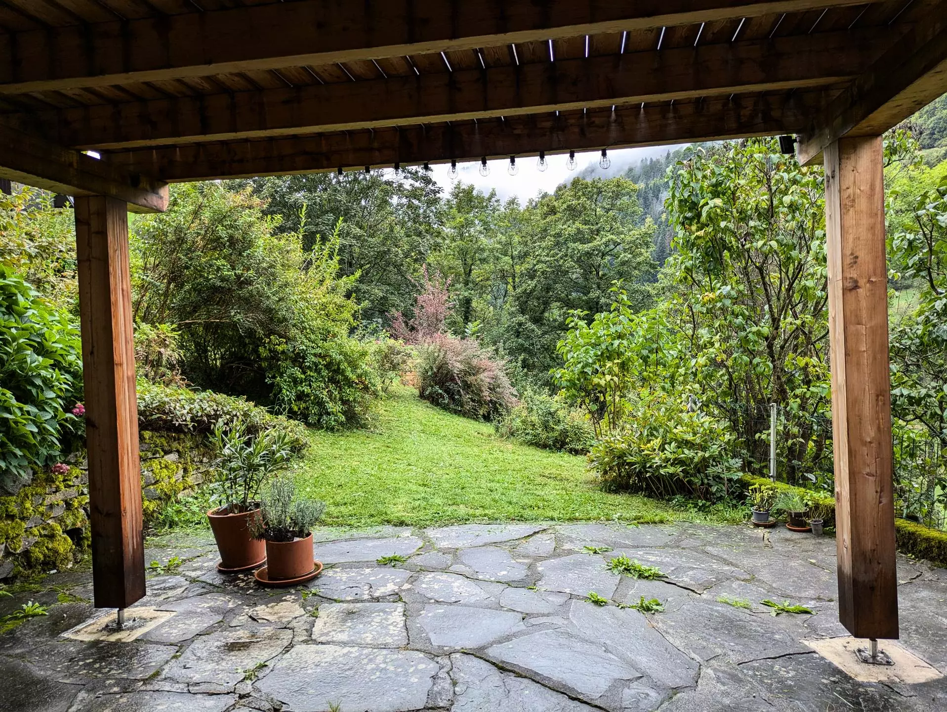 Small garden facing southwest. Part of it is sloping, keep a close eye on children.