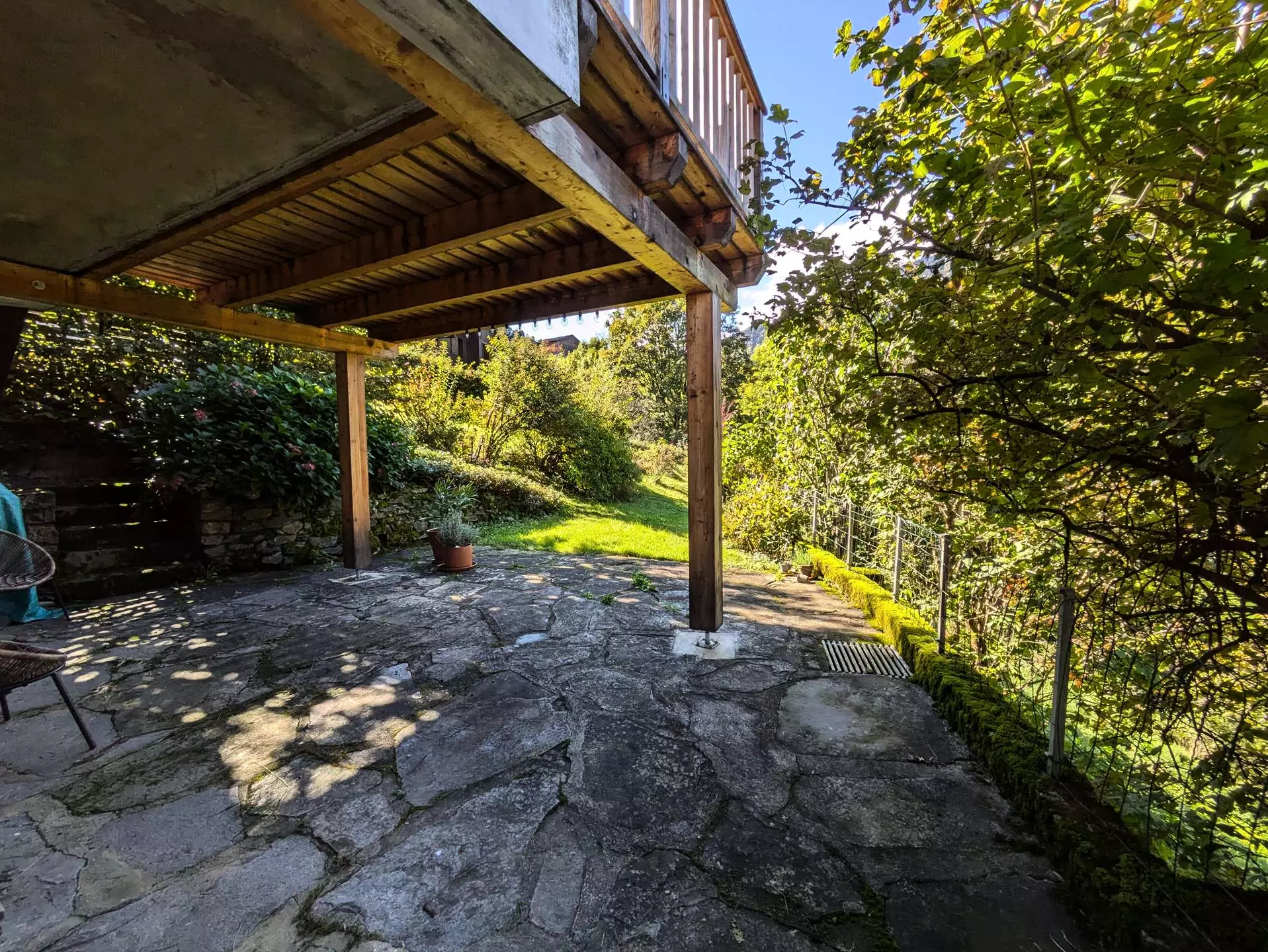 The dining area (large table with possible extensions and 2 baby chairs), adjoining the kitchen, opens onto a cute little terrace, sheltered from view, which allows you to fully enjoy the south-west facing garden.