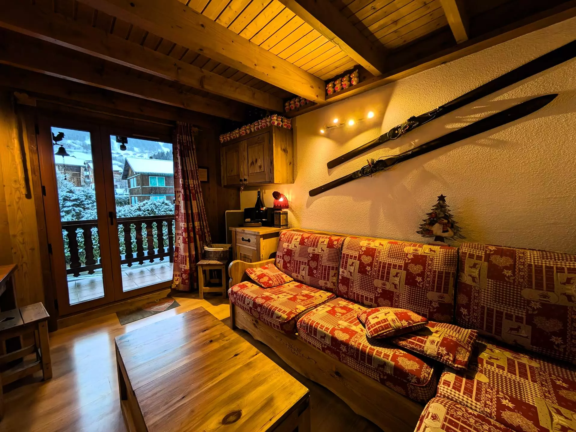 Beautiful east-facing loggia with garden furniture - lovely views of the village and the peaks. Baby equipment (1 baby bed, stroller, changing mat, potty, baby carrier) - 1 sled. Private ski locker.