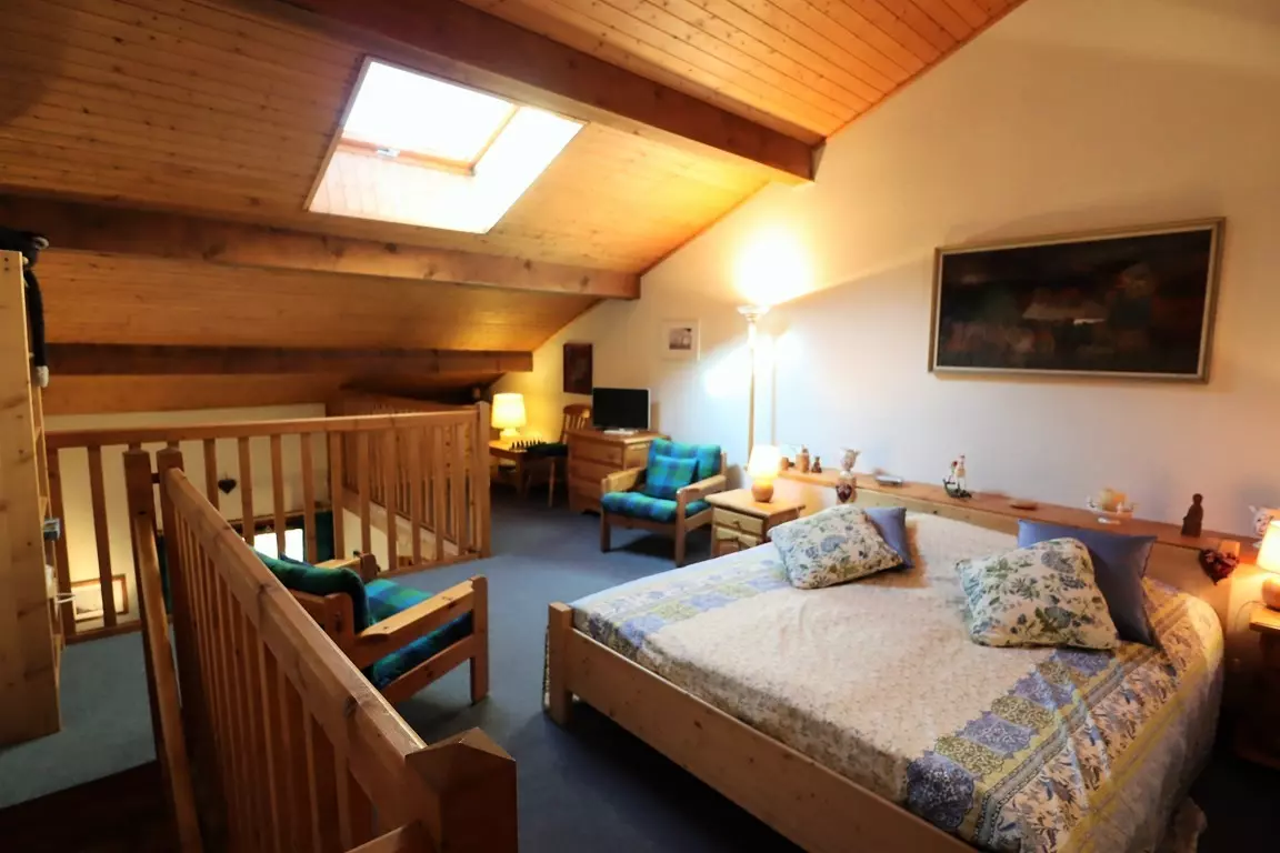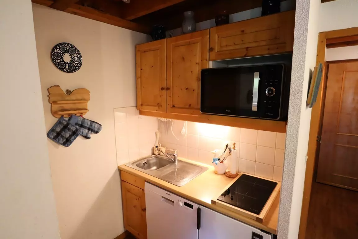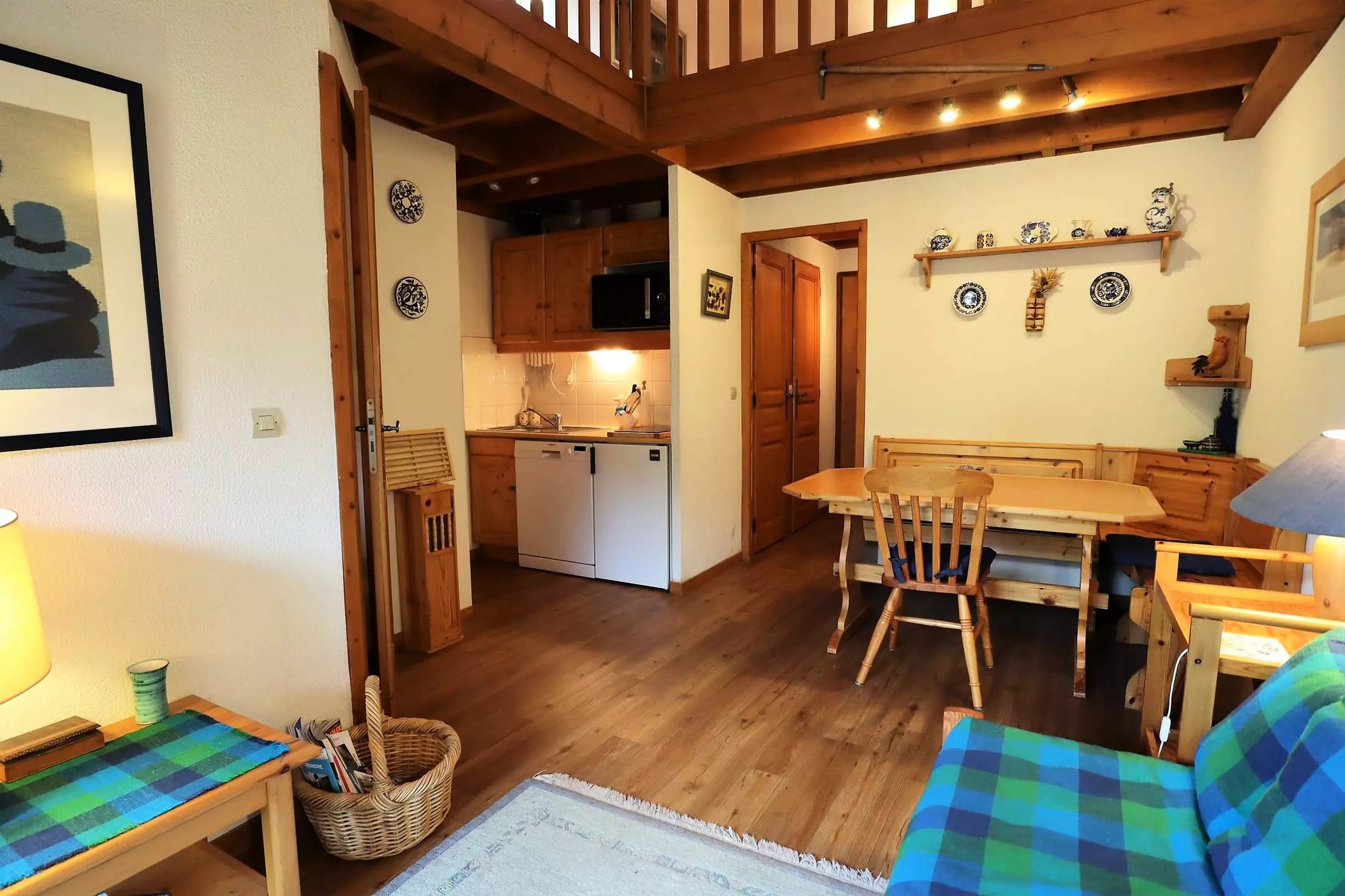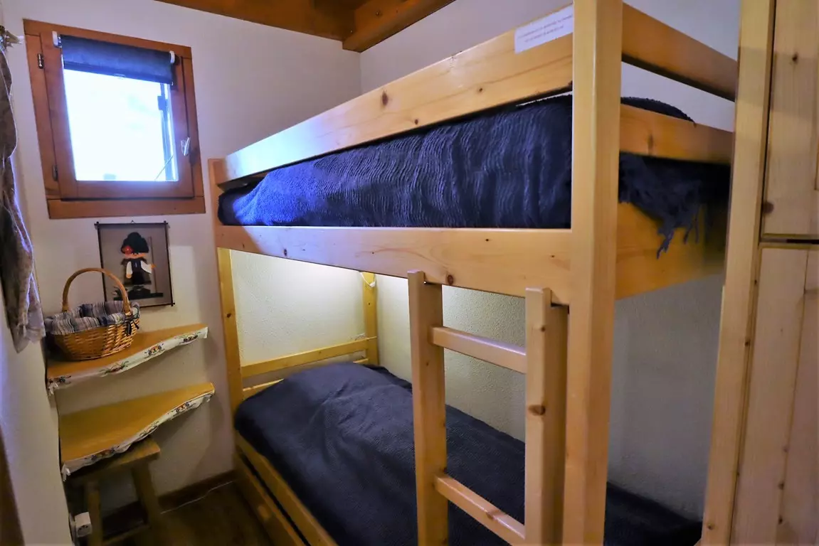 DUPLEX apartment FOR 4 TO 5 PEOPLE 45 m² in a residence of 66 apartments in Val Blanc I with SWIMMING POOL in summer, 50 m from the slopes - comfortable living room opening onto a loggia balcony with a dominant view of the mountain pastures and hamlets - equipped kitchen area with oven, fridge, microwave, dishwasher, induction hob - small bedroom with 2 bunk beds 90 x 190. Bathroom - WC - Large mezzanine with a 160 double bed and office space - 1-person sofa in the living room - ski locker - west-facing balcony - TV. On level 4 with elevator.
