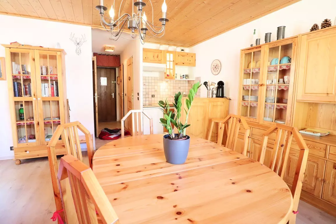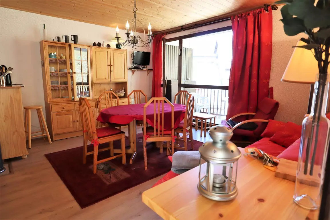 Very nice mountain-style apartment of 37 m² with 2 small bedrooms with windows (1 double bed + 2 single bunk beds) and 2 magnificent S/E and N/E balconies - very spacious living room with double orientation (pull-out sofa) - kitchenette with dishwasher - wc - bathroom