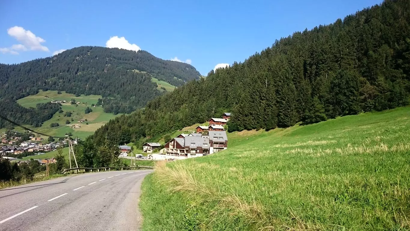 1 km from the shops, pedestrian access via a terraced promenade (a few steps). Not recommended for people with reduced mobility in winter. Free ski shuttle service is available nearby - for good and intermediate skiers, skis can be accessed from the Grand-Mont slopes. Large parking lot at the bottom of the residence.