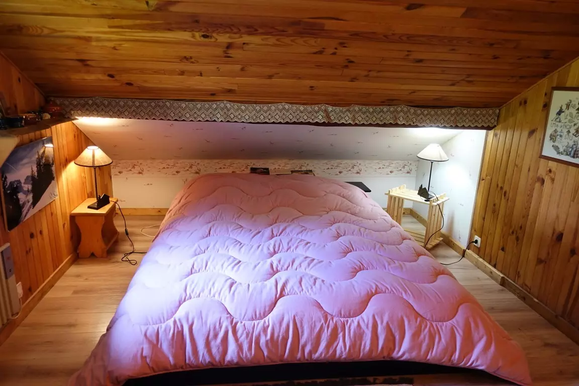 This chalet, enjoying an overhanging view and a few minutes by car or 30 minutes on foot from the village by the paths, consists of a spacious and warm living room with fireplace for evenings by the fire (wood included) - south-facing balcony - well-equipped independent kitchen - 3 closed bedrooms + 1 alcove + 1 mezzanine (In the basement: There are 2 140 cm beds; on the ground floor with living room 2 90 cm beds in alcove. Upstairs on the mezzanine: 1 120 cm bed and 1 bedroom with 1 160 cm bed)