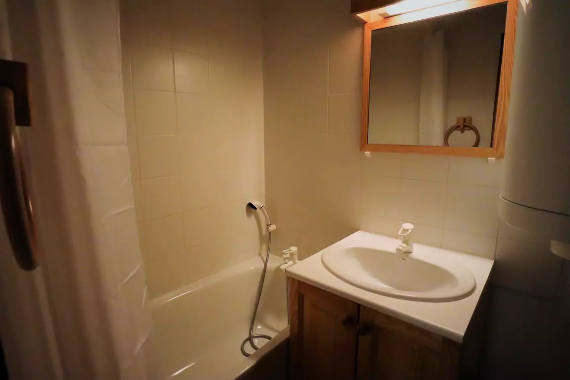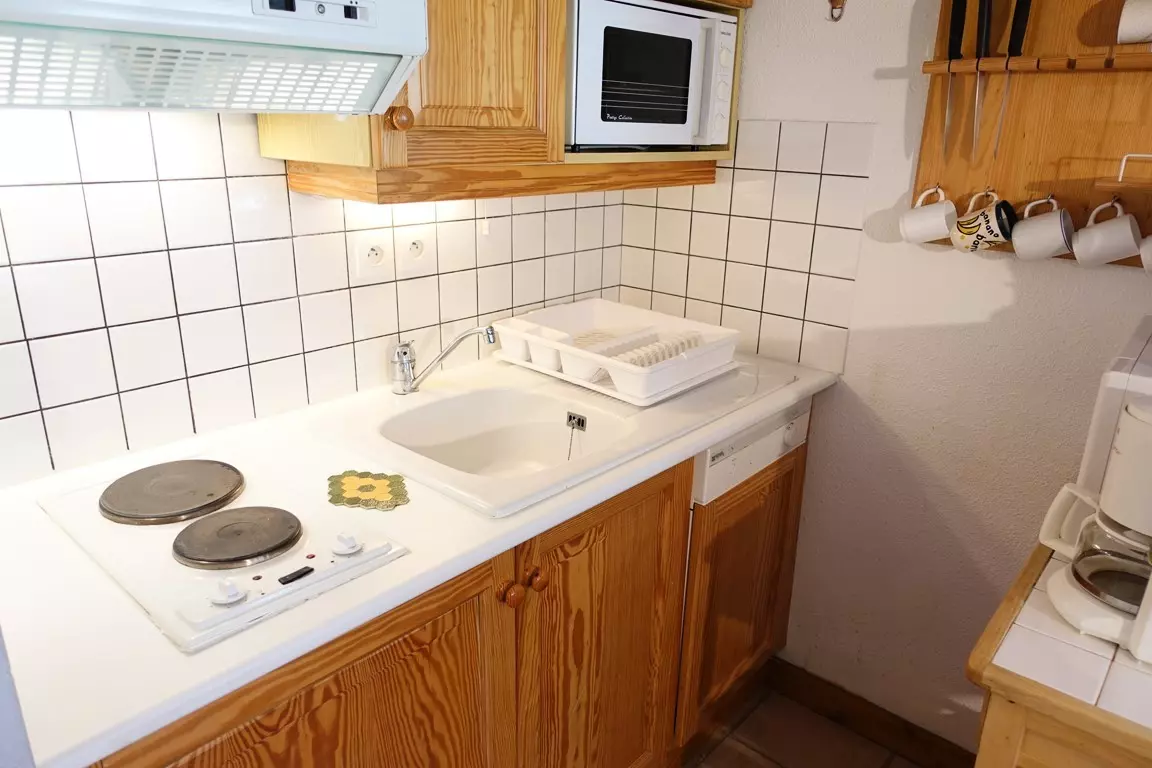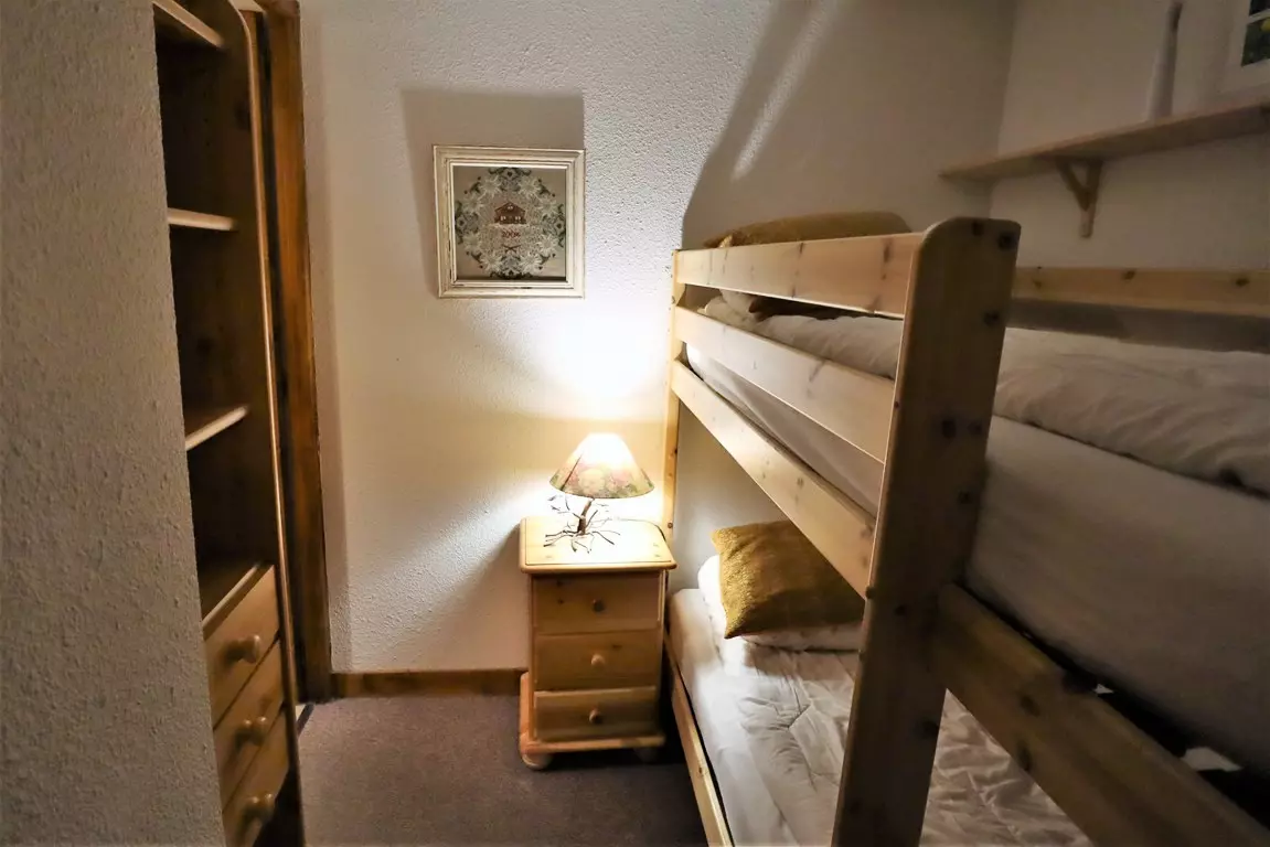On the 1st floor small west terrace - closed alcove with 2 bunk beds 90 x 190 - living room with 1 sofa (BZ - 140 x 190) 2 people with kitchen area equipped with dishwasher and oven - fridge - Bathroom - separate WC. Ski lockers.