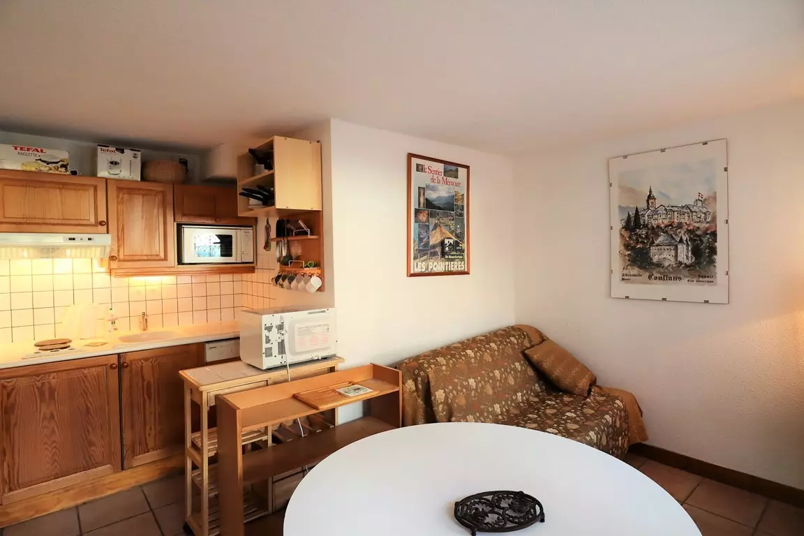 Adorable apartment at the foot of the slopes in the heart of the Planay resort for 3/4 people, approximately 26 m², in the cozy residence of 18 apartments of Orée des Pistes, 3 km from Arêches and at an altitude of 1200 m, in summer, at the foot of the mountain pastures and hikes. Friendly services, mountain atmosphere.