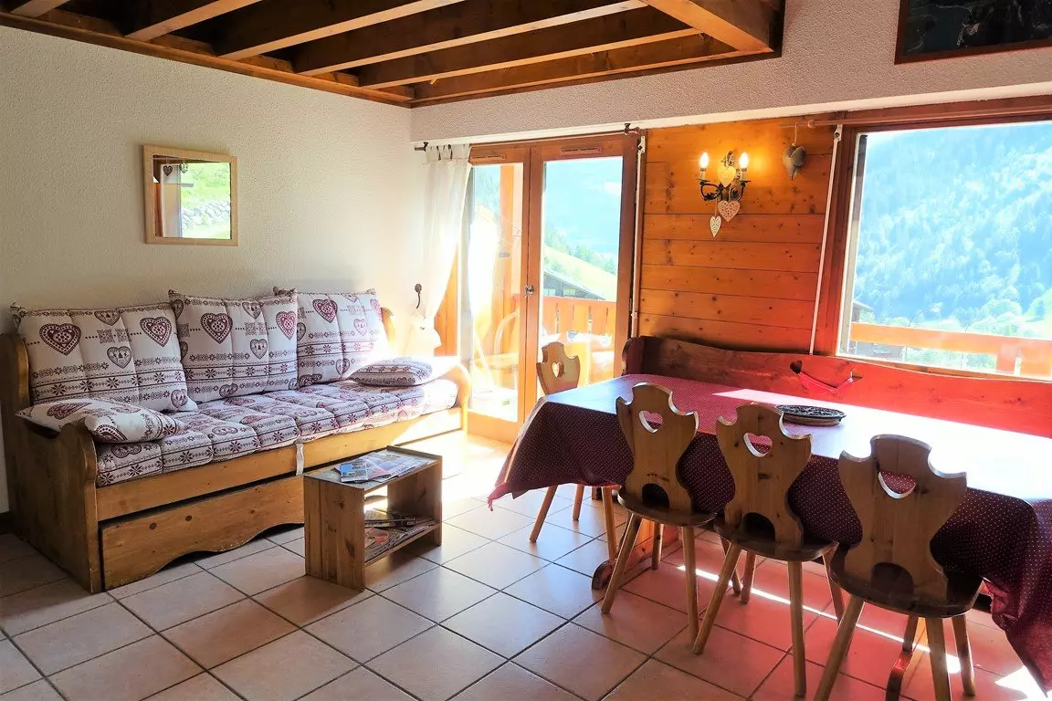 Beautiful duplex at the foot of the slopes in the heart of the Planay resort for 4/6 people 40 m², in the residence of 18 apartments of the Orée des Pistes, 3 km from Arêches and at 1200 m altitude, in summer, at the foot of the mountain pastures and hiking trails. 2nd floor, 2 south-east balconies - living room with 1 sofa bed 2 x (90 x 190) - VCR - well-equipped kitchen area dishwasher and oven fridge - upstairs: 1 bedroom with 1 double bed 160x200 - 1 bedroom with 1 double bed (140 x 190 and 1 single bed (90 x 190) - bathroom (bathtub) - separate WC. Bicycle storage and ski storage - beautiful view.