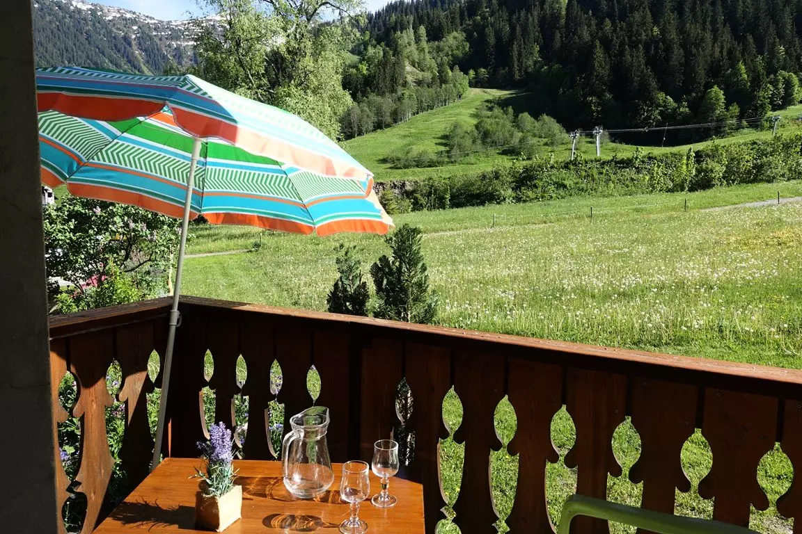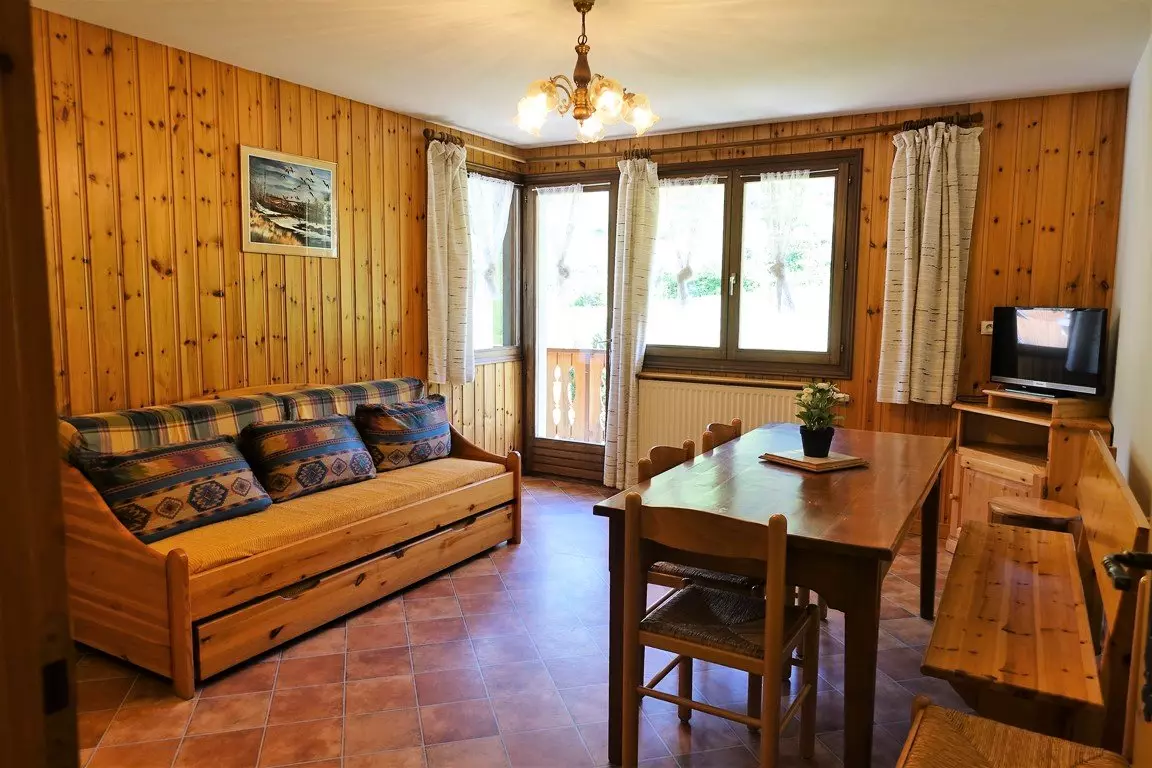 Beautiful 46m² apartment at the foot of the slopes in the heart of Planay, furnished and equipped for 6 people, 1st floor of the Cristol residence, 3 km from Arêches and at an altitude of 1200 m, in summer, at the foot of the mountain pastures and hiking trails.