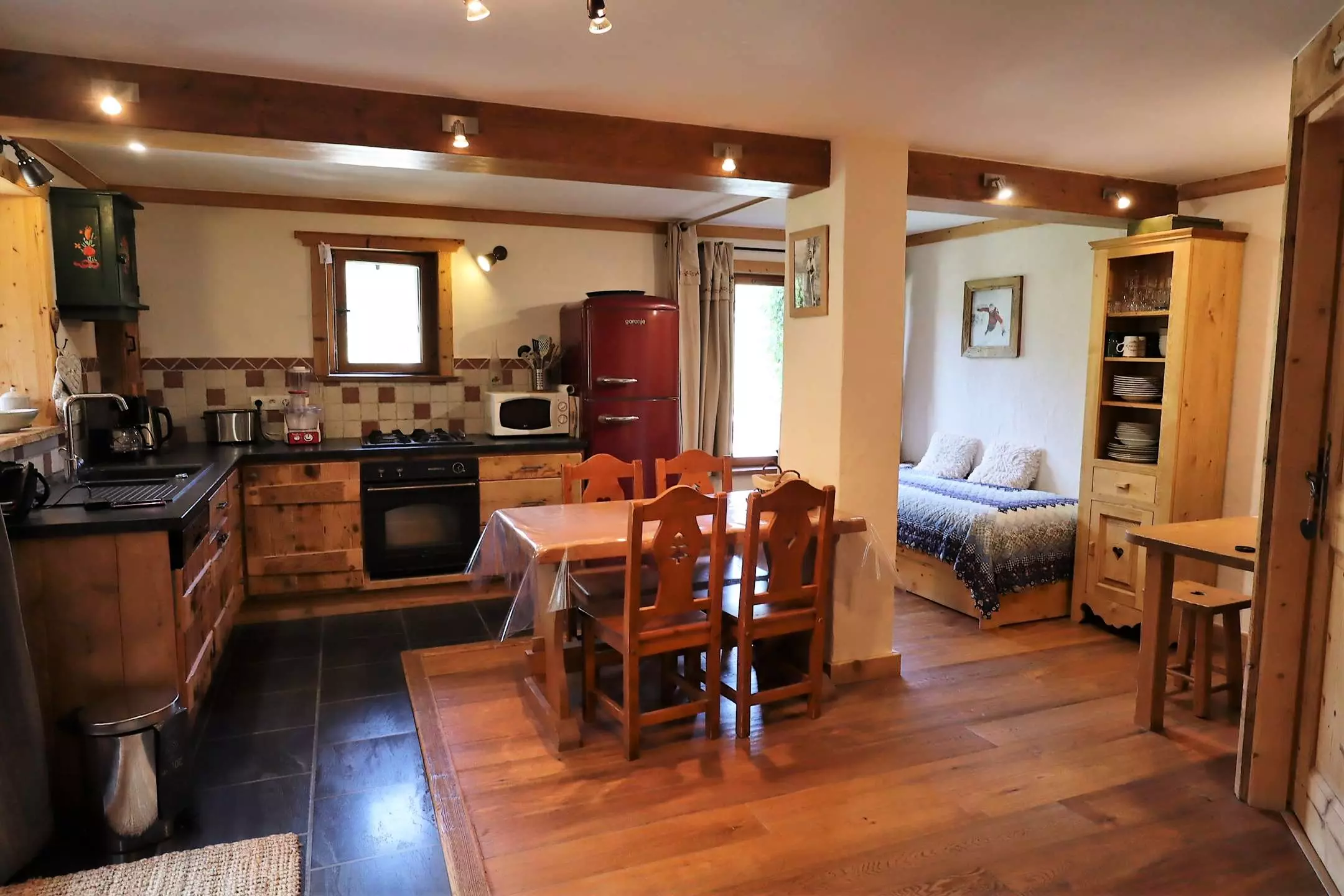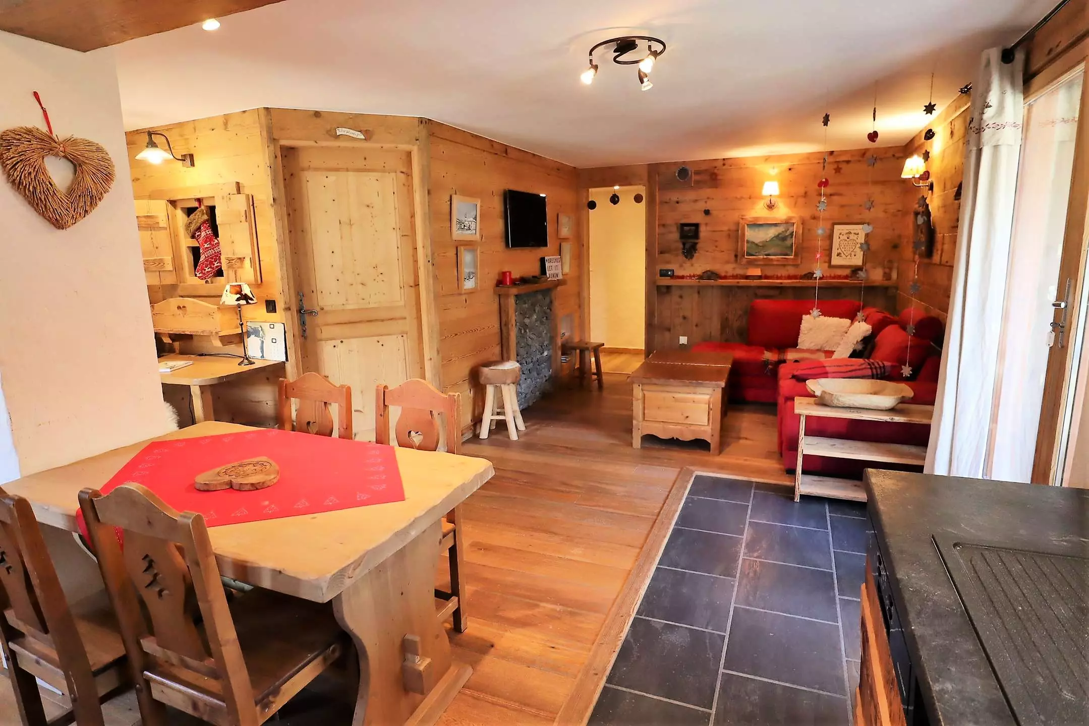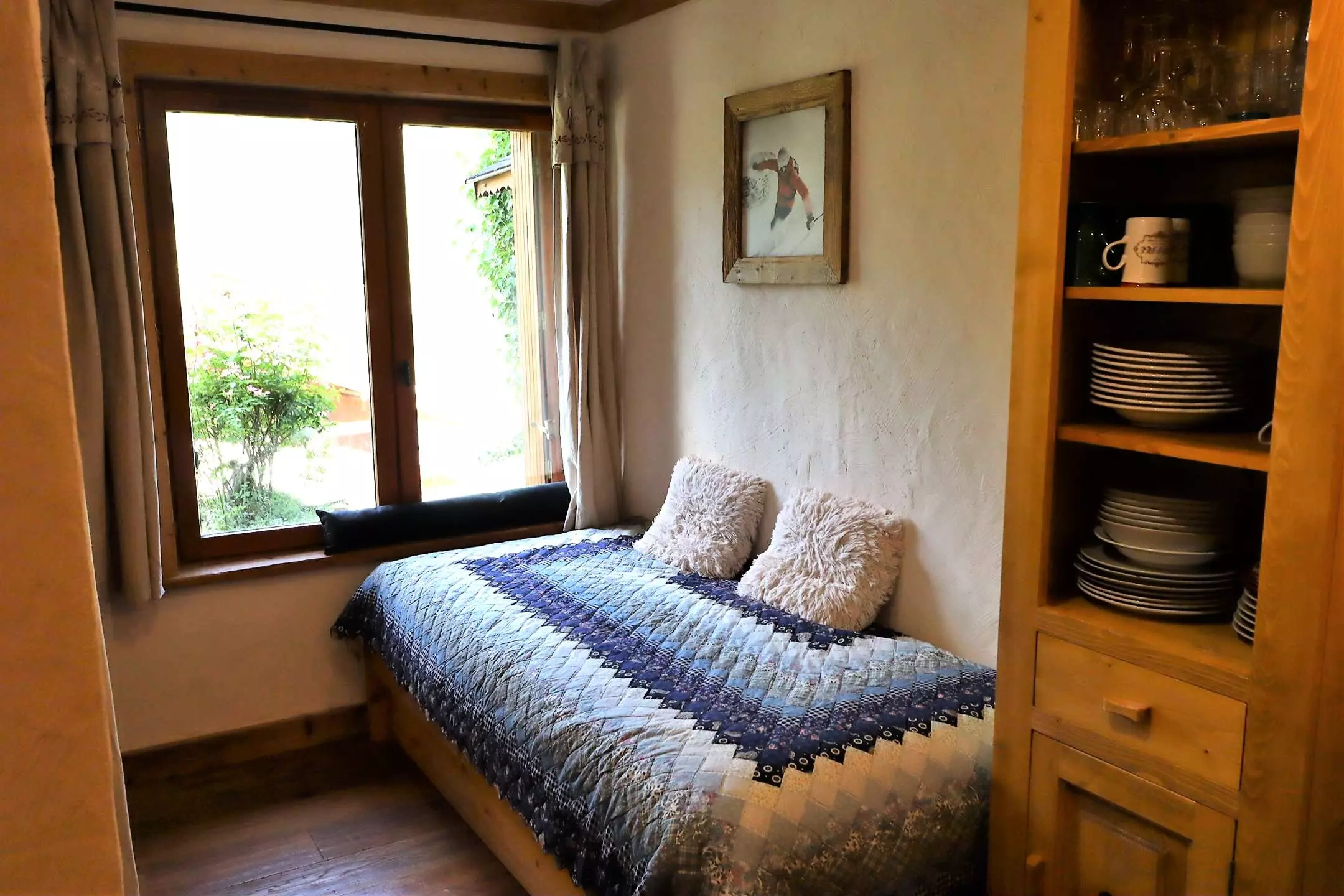 A real little corner of paradise for this apartment benefiting from a very pretty view of the village and the mountain, calm and relaxing, with a wooden terrace where it is good to live sheltered from the wind and prying eyes. The living space (wooden parquet, slate floors) is very warm and offers great fluidity between the dining area, the perfectly equipped kitchen (dishwasher, microwave, fridge-freezer, etc.), the living room with television (very comfortable sofa, the office space/rest area (with 2 90 cm pull-out beds) and the closed couple's bedroom (access to the bed by a wooden step).