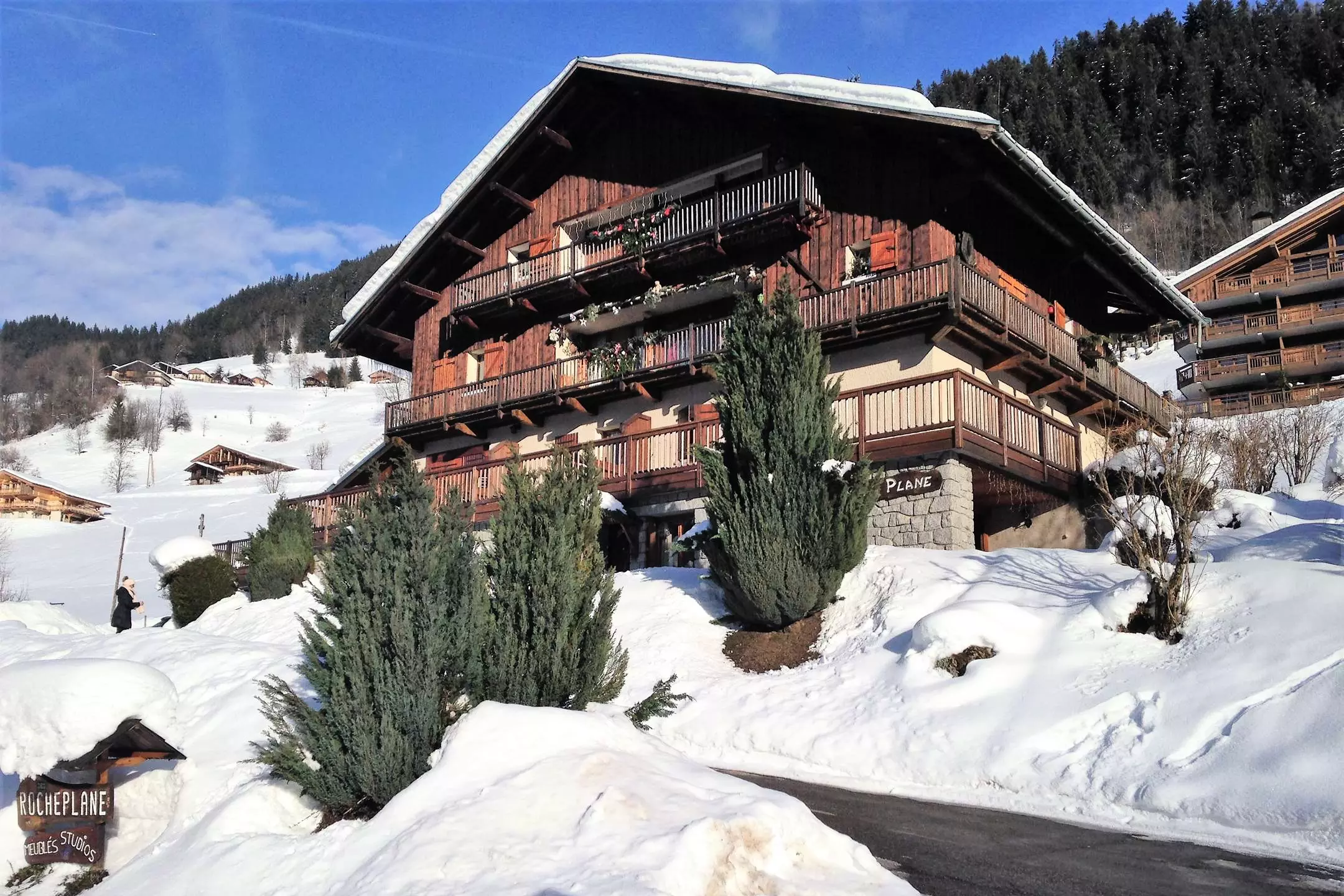 The apartment is located on the slightly elevated ground floor of the Roche Plane residence, overlooking the village on the southwest slope. Family-friendly, with an entrance hall, a boot room, and a ski locker in the garage.