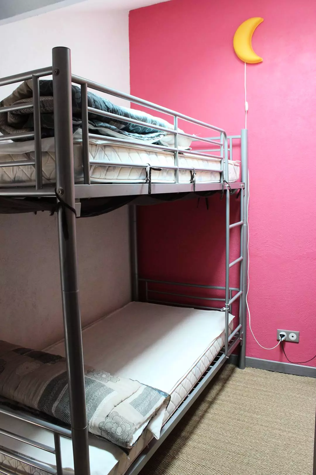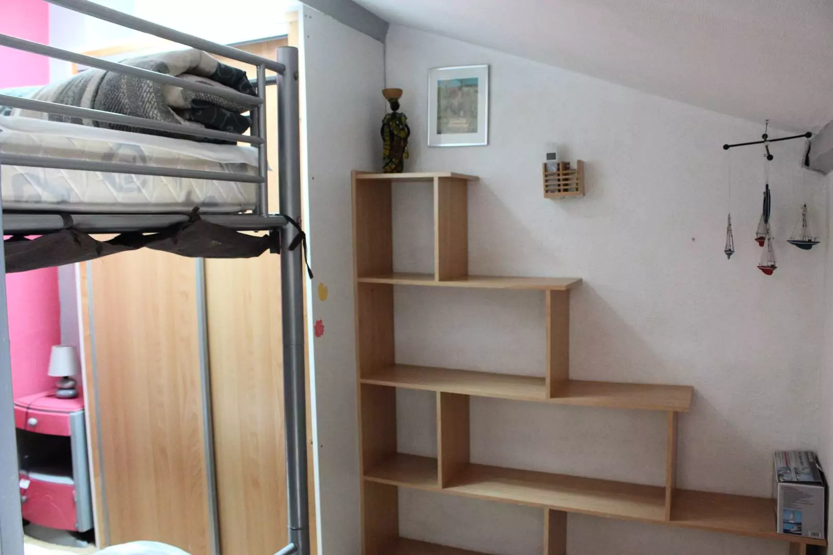 On the mezzanine, 2 bedrooms: Bedroom 1 with a 140 cm bed and bedroom 2 with a 90 cm bunk bed.