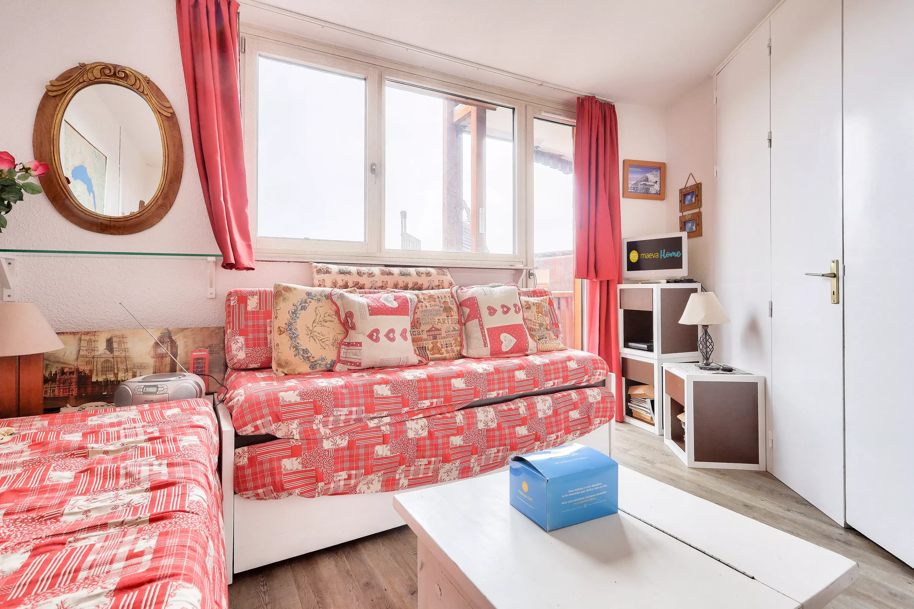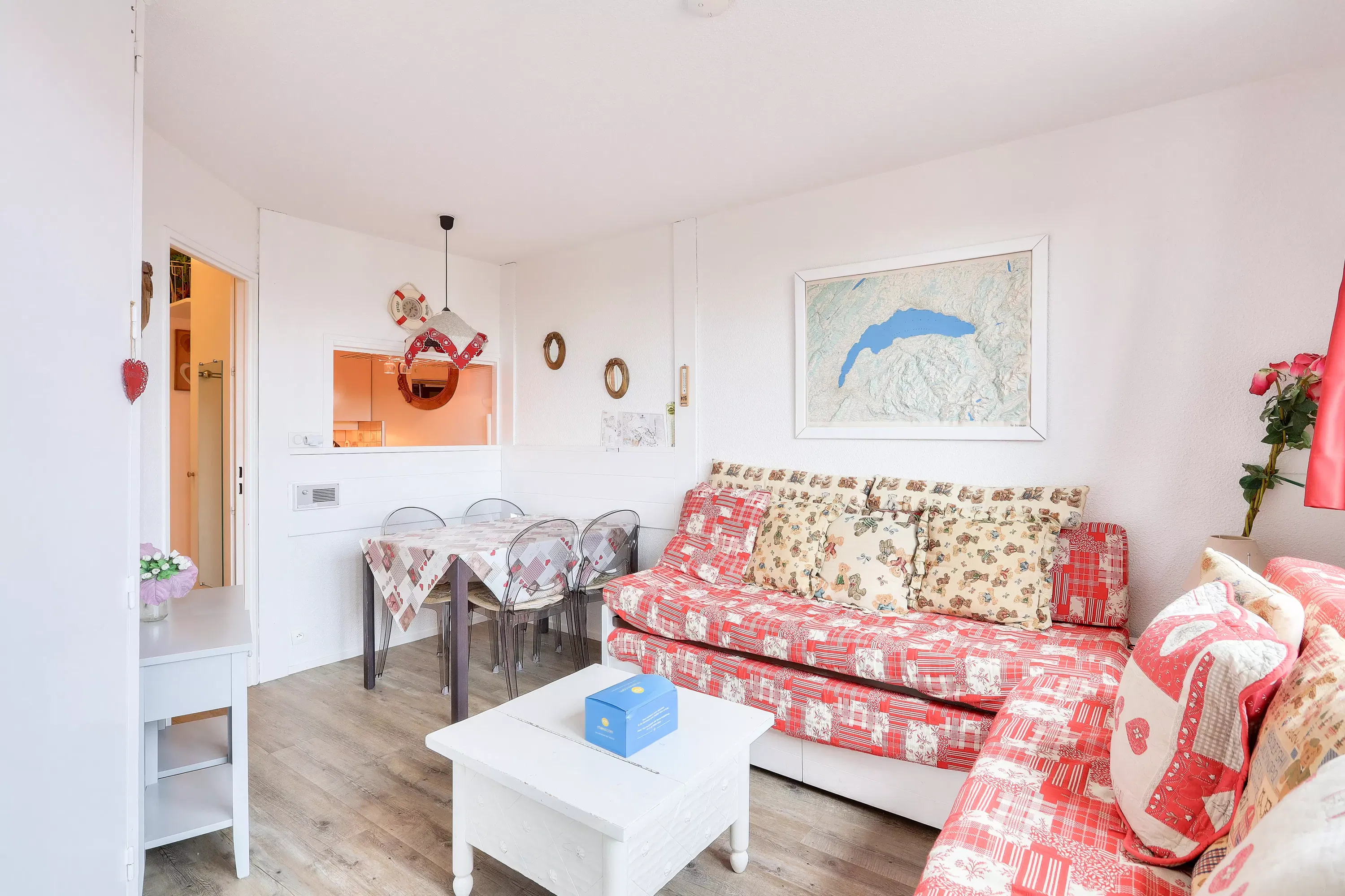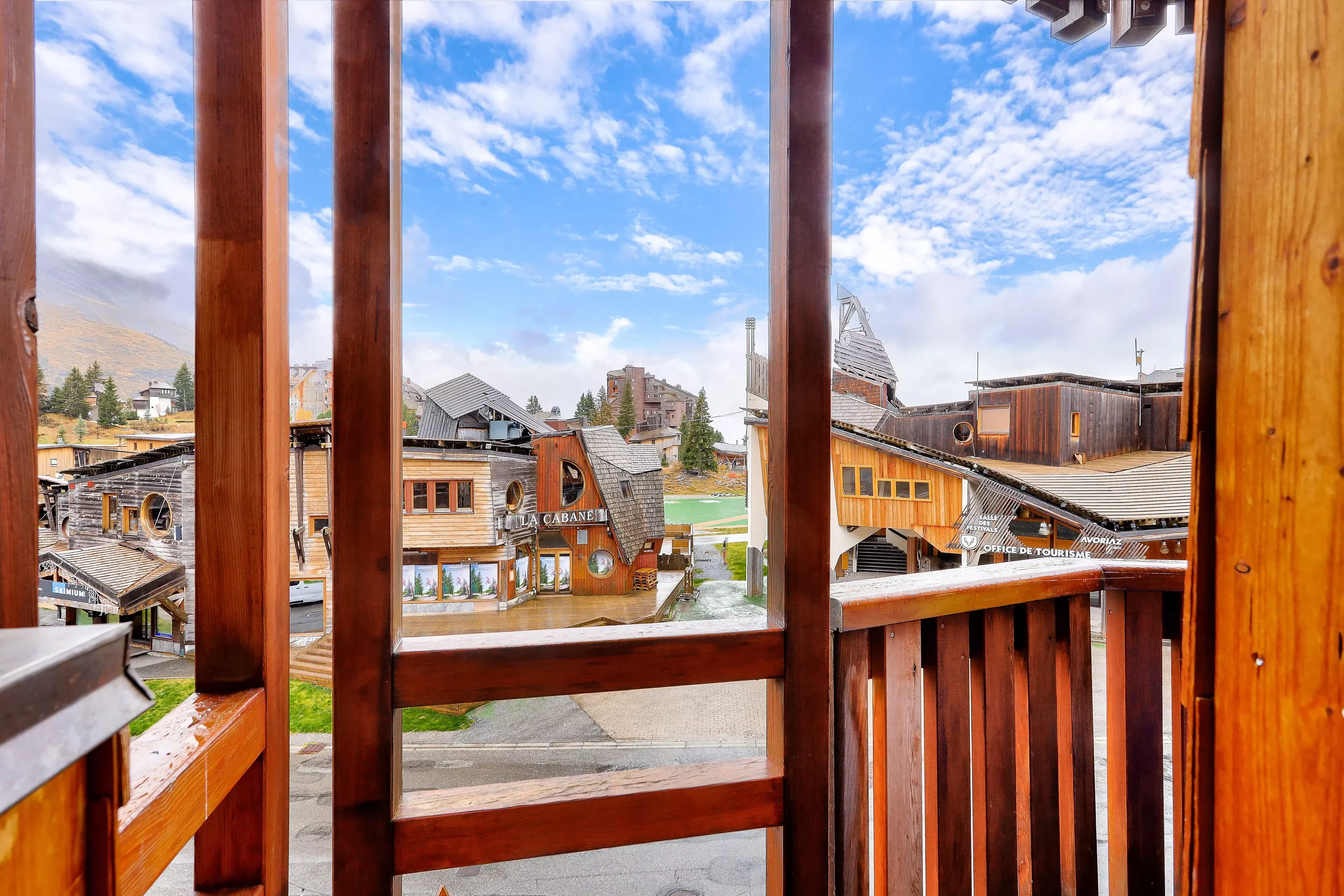 The advantages of this accommodation: heart of the resort, close to the children's village and Aquariaz, ski-in ski-out, elevator, ski locker, south-west exposure, beautiful view of the resort center, furnished balcony, vacuum cleaner, Hi-Fi system, storage, DVD player, 2 TVs...