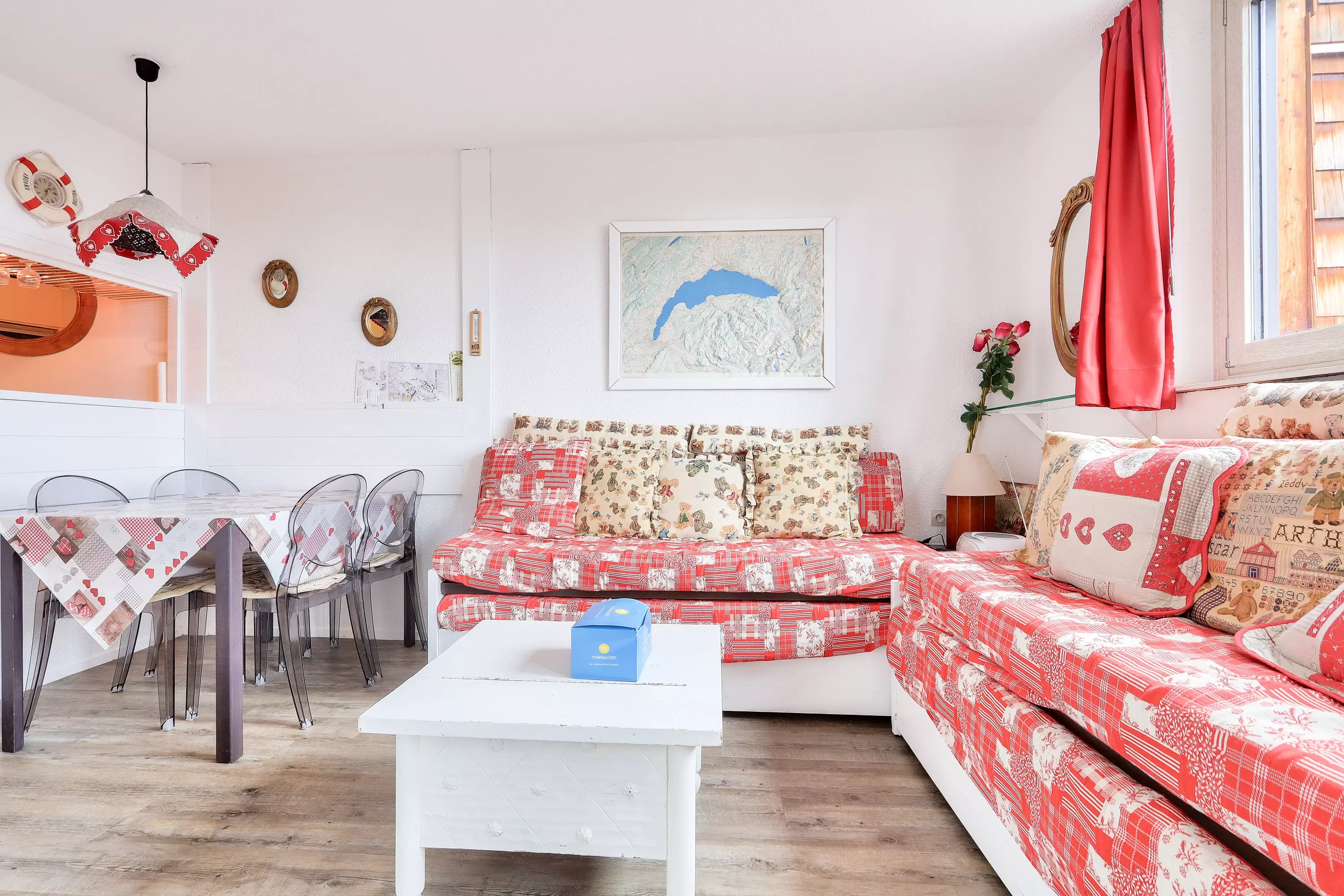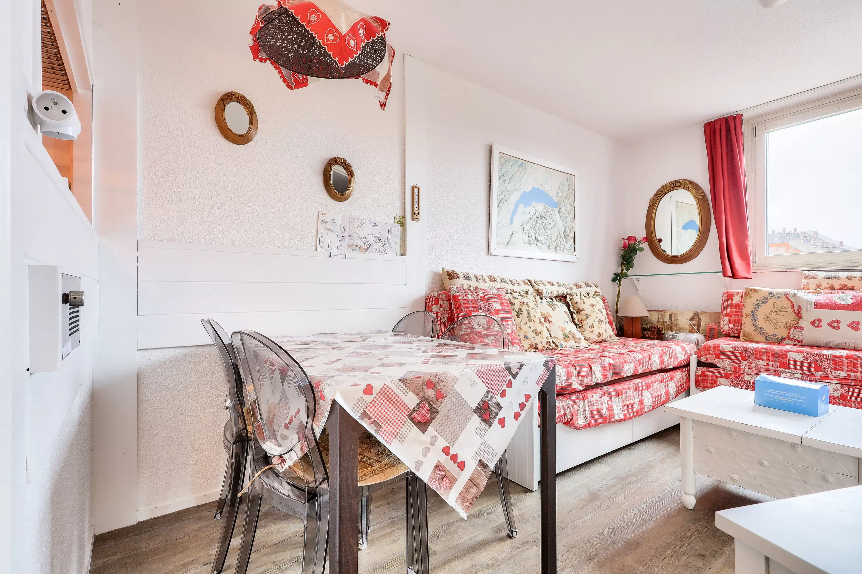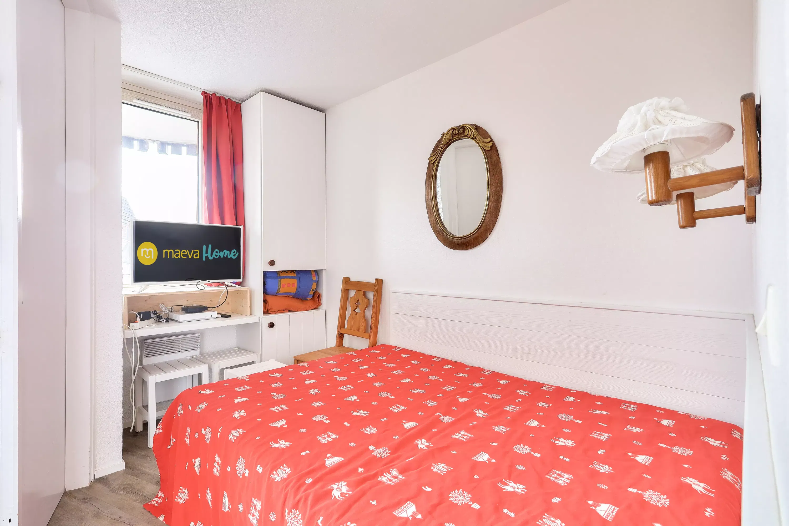 The advantages of this accommodation: heart of the resort, close to the children's village and Aquariaz, ski-in ski-out, elevator, ski locker, south-west exposure, beautiful view of the resort center, furnished balcony, vacuum cleaner, Hi-Fi system, storage, DVD player, 2 TVs...