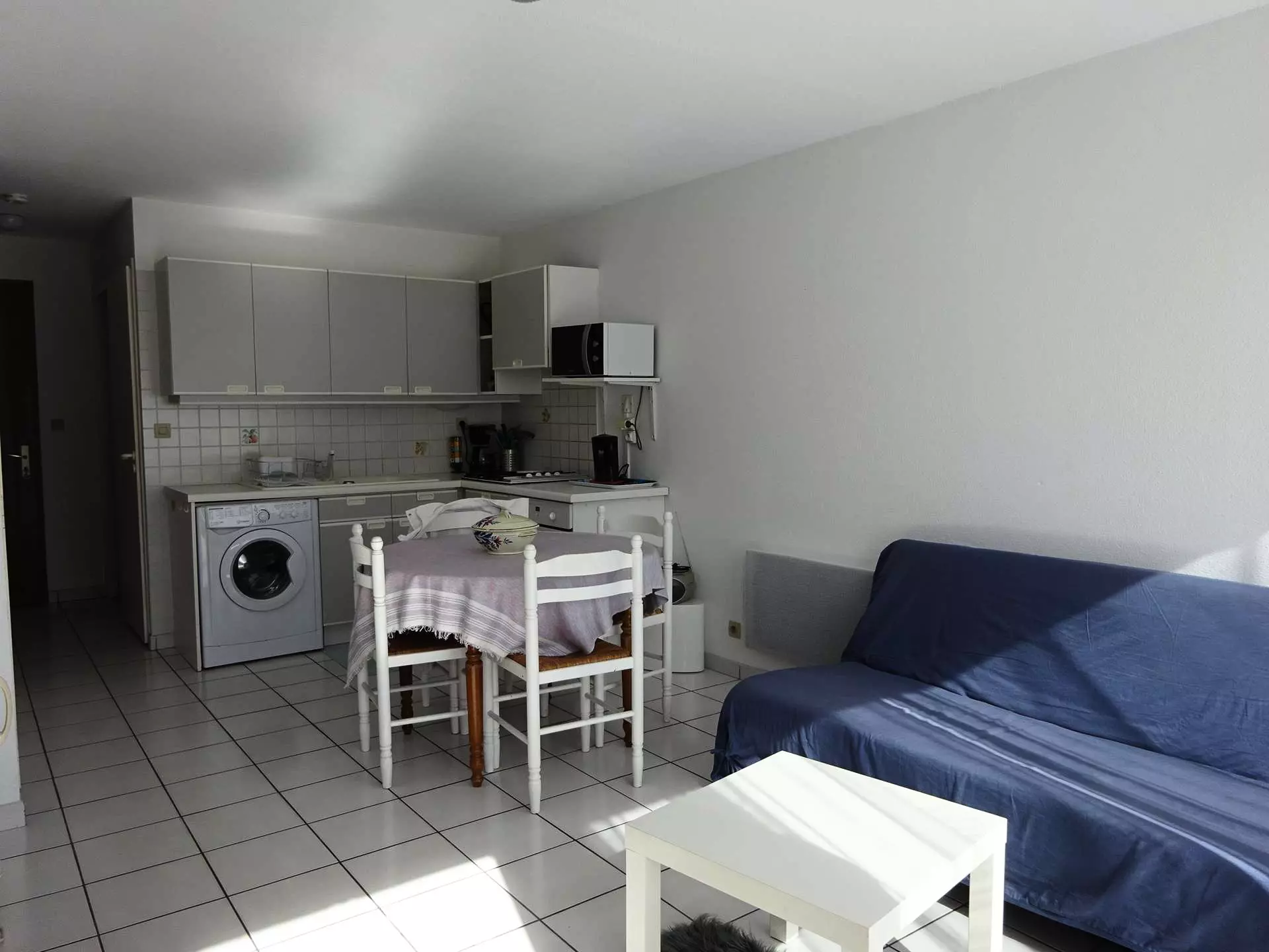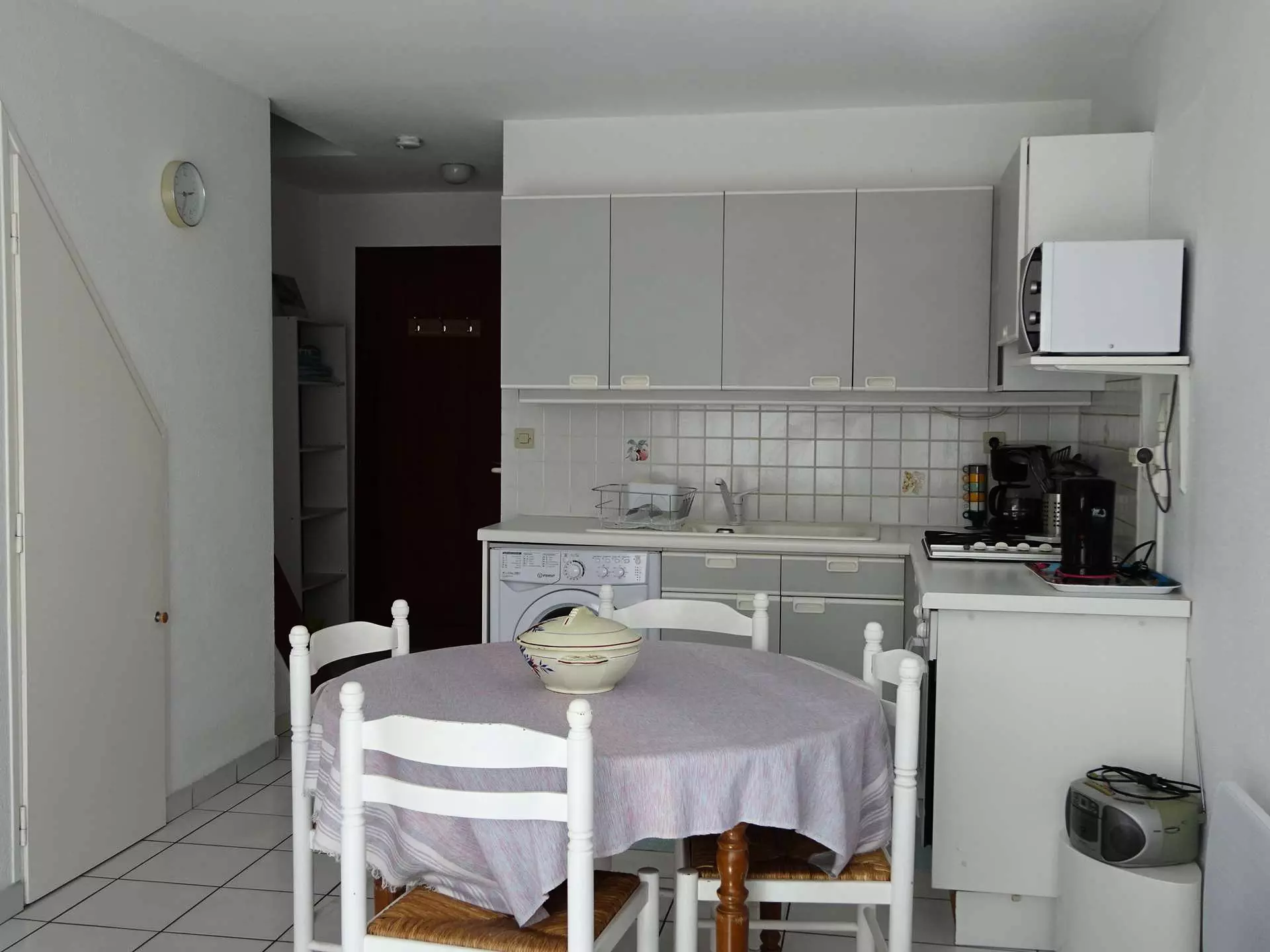 1 OPEN KITCHEN: 3 gas burners + 1 electric burner, oven, microwave, fridge-freezer, washing machine, storage, filter coffee maker, kettle
