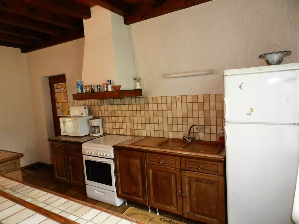 AMERICAN KITCHEN: refrigerator-freezer, gas stove, conventional oven, microwave, storage, dishwasher, filter coffee maker, toaster
