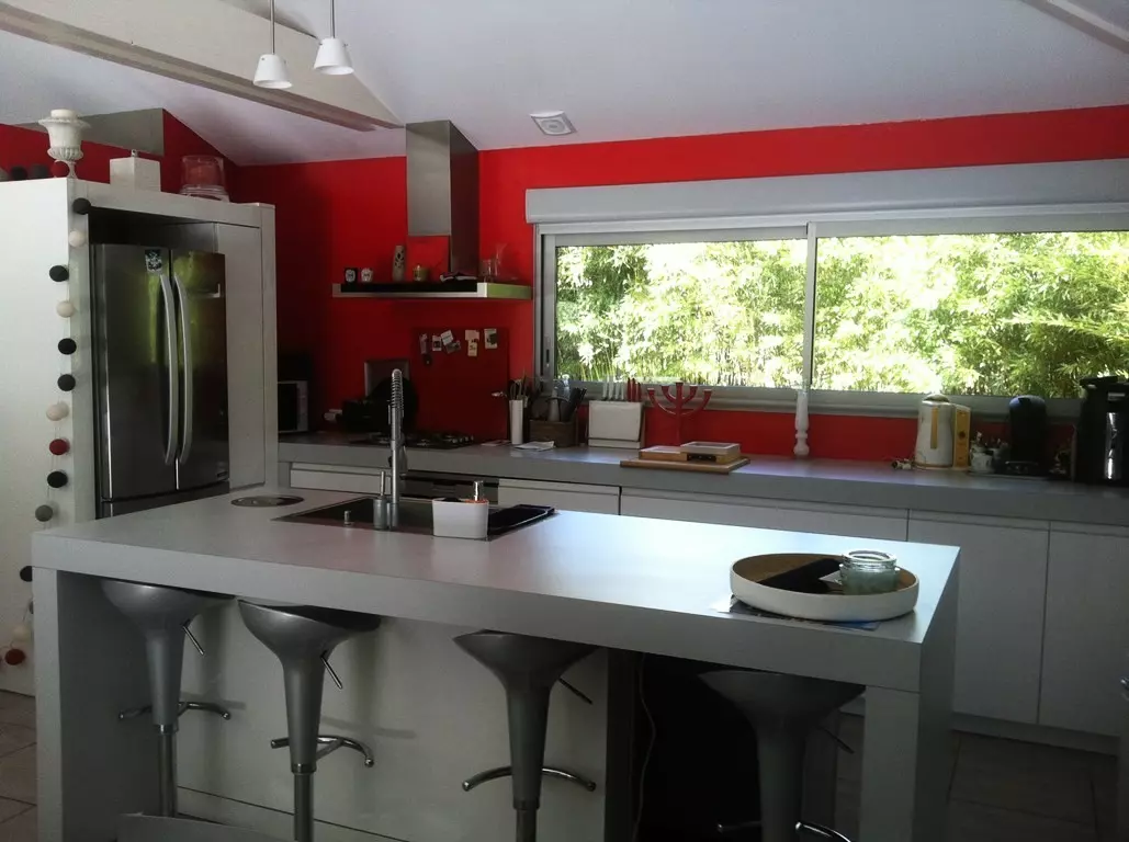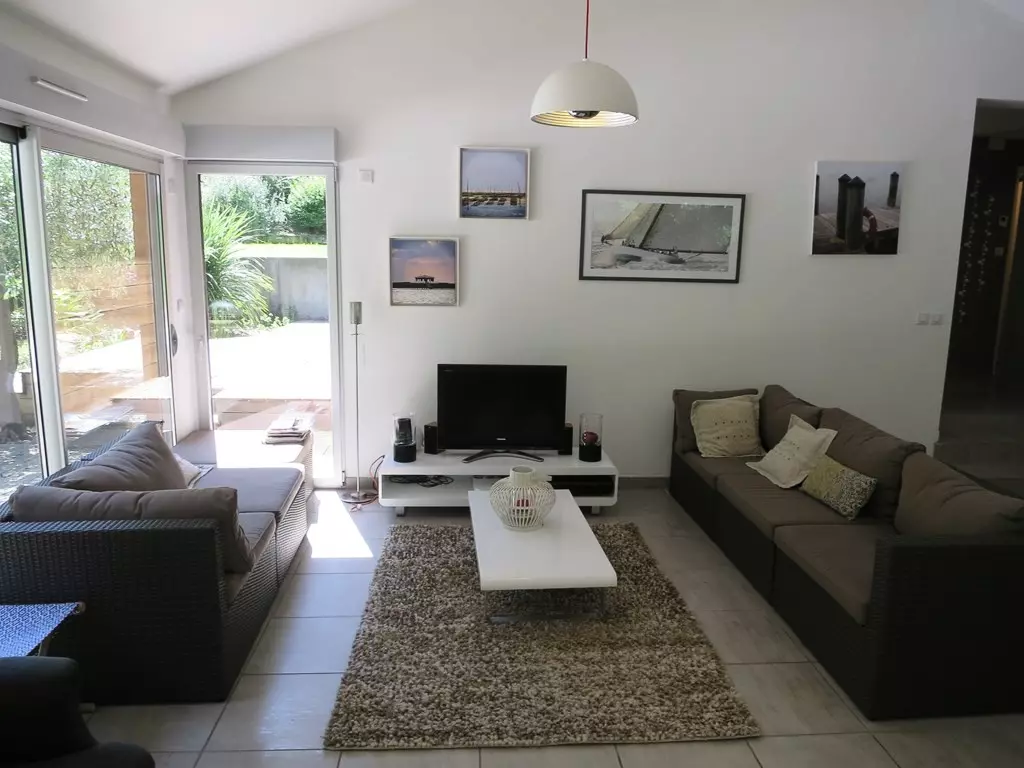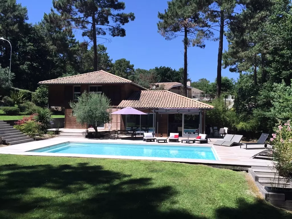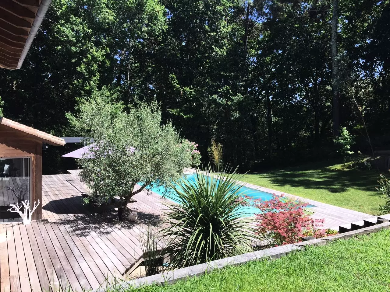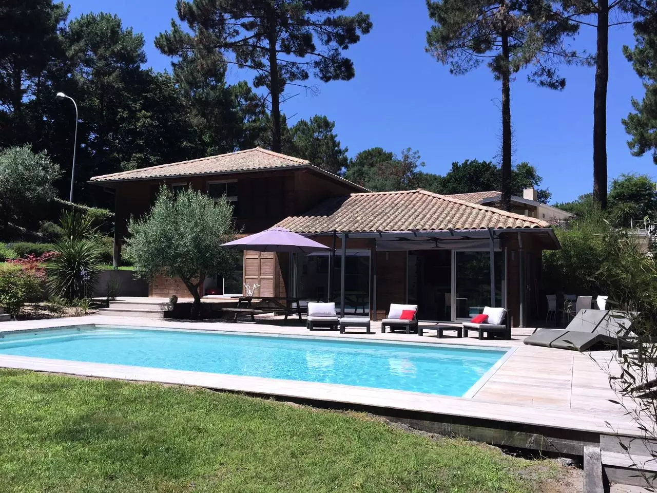 On the site of the 27-hole golf course, 2 km from the lake and 6 km from the beach, in a green and quiet residential area, beautiful modern villa of 150m2 of wooden construction, light and spacious, for 8 people, with a duckboard terrace extended by a heated swimming pool of 10x5m (depending on outside temperature) and secured by a roller shutter.