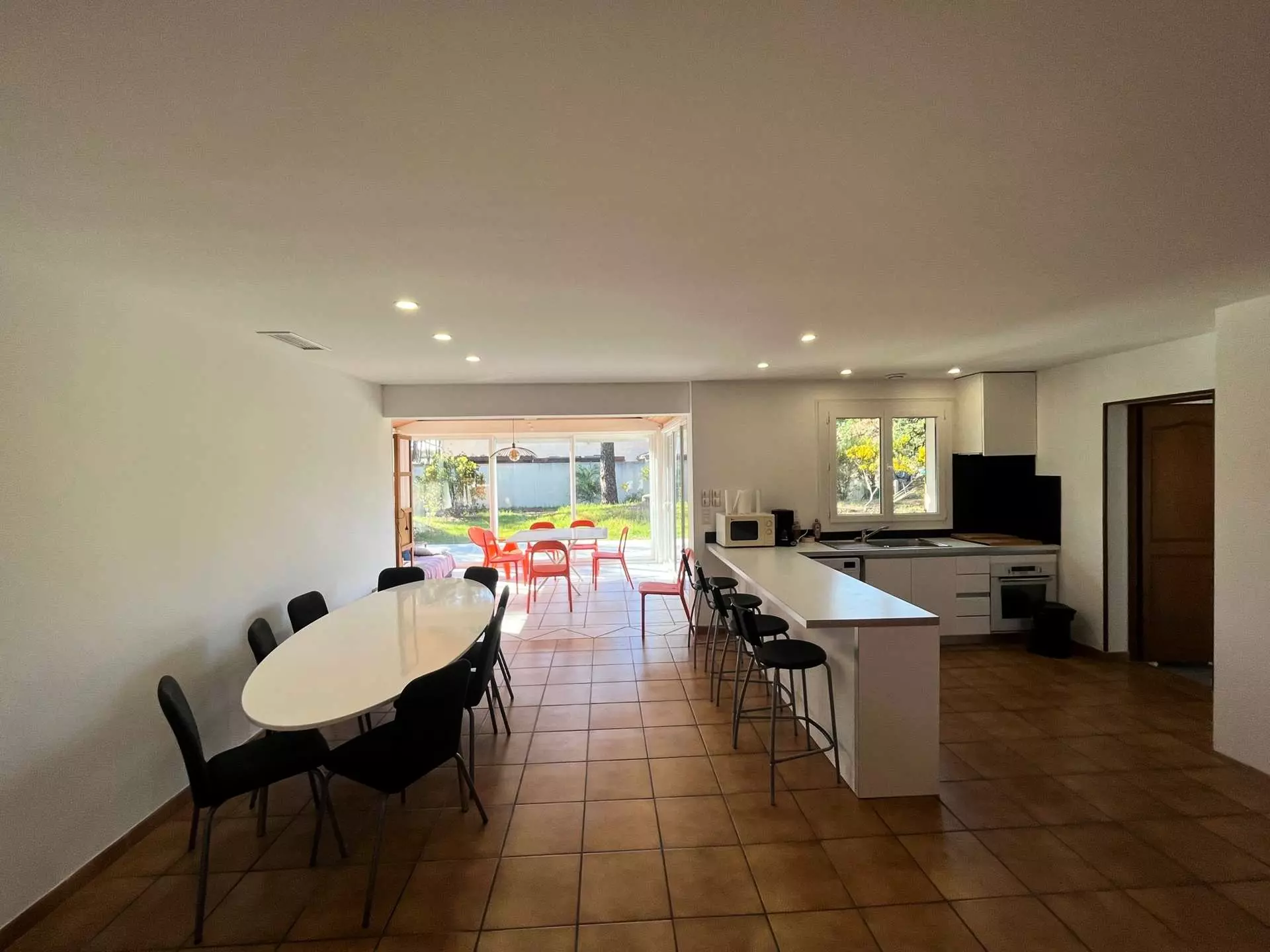 Pleasant renovated villa of 130m² for 8 people, renovated in January 2024, on a fenced and wooded plot of 700m². Quiet neighborhood and environment, 800m from the beach and 600m from shops. At the rear of the villa, pleasant veranda overlooking the wooded garden, barbecue and garden furniture. Pets not allowed.