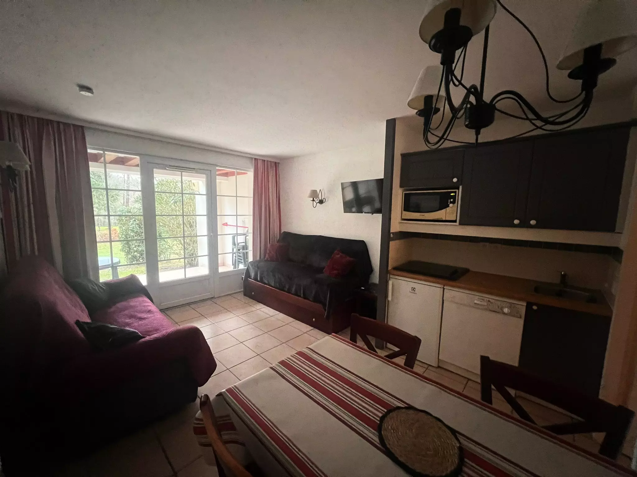 The advantages of this accommodation: well-maintained, bright accommodation, private terrace overlooking the forest, shared swimming pool and television.