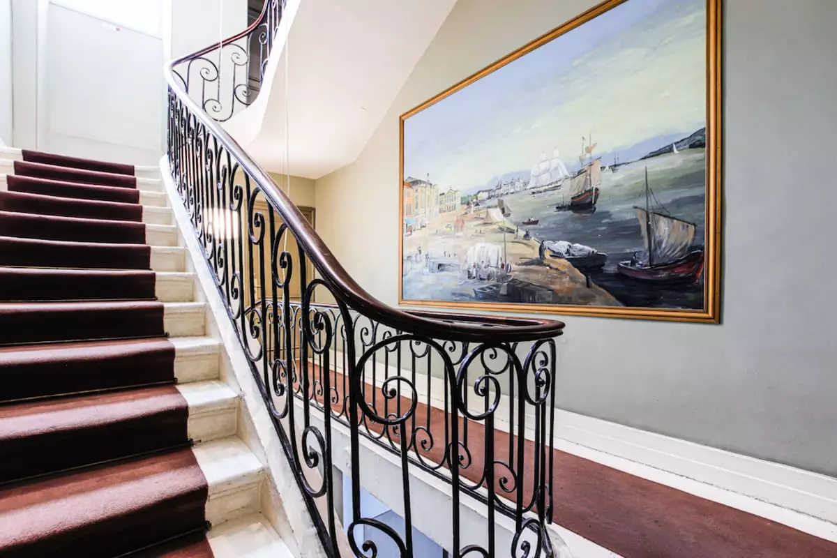 The charm of this attic apartment was combined with a sober decoration enhanced by the vibrant colors of the works of the Russian-born painter Nicolas de Staël. The bright light of the south of France, where he stayed in May 1952, overwhelmed Staël and suggested a series of very colorful landscapes inspired by the beaches of Lavandou (title of the work chosen for the apartment