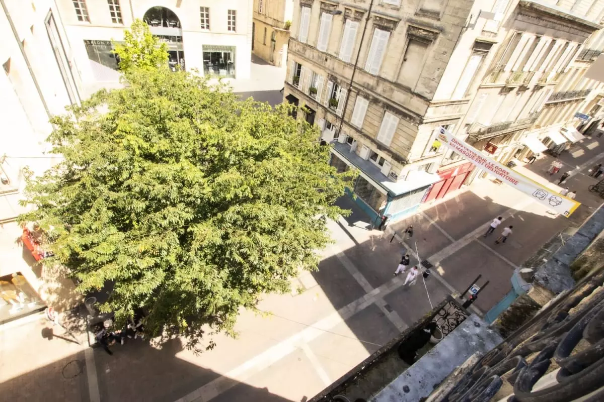 Nestled on the 3rd floor of a bourgeois building, this 100 m² corner apartment offers breathtaking views of Rue Porte-Dijeaux and Place Puy Paulin. With its elegant moldings, authentic parquet flooring, and decorative fireplace, it harmoniously combines classic Bordeaux style with a modern, high-quality renovation.