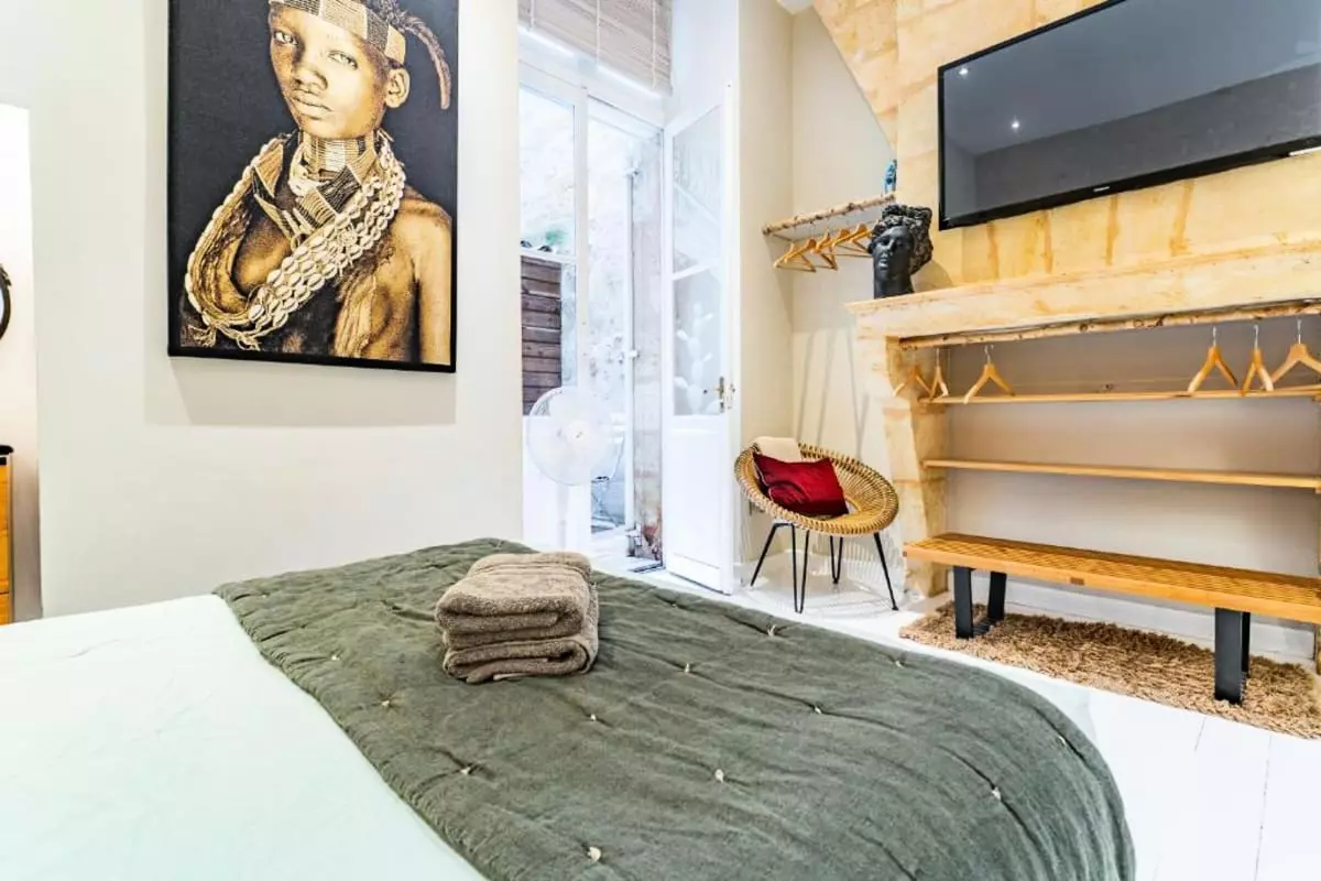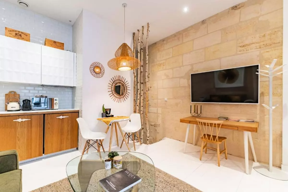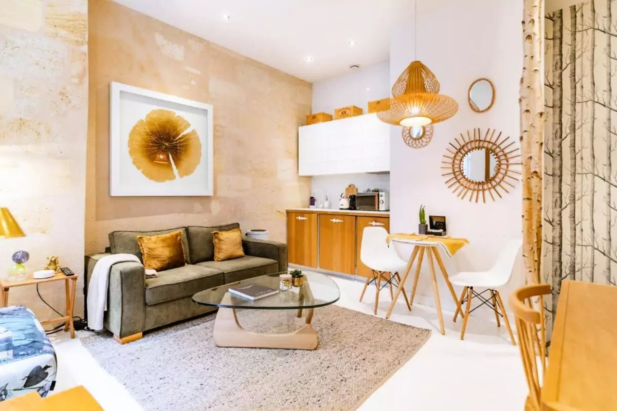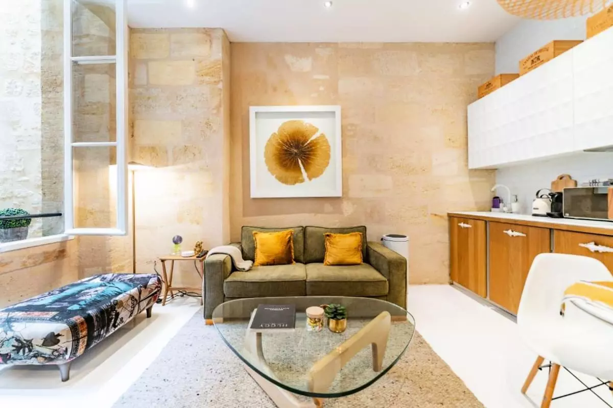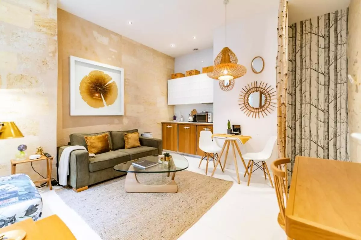 Stay in this charming apartment during your stay in Bordeaux! A chic, elegant, and refined haven, this apartment will be the perfect base for exploring the city from the inside, thanks to its prime location. Recently renovated and elegantly furnished with attention to detail, its beautiful Bordeaux stone walls and refined, subtle furnishings will enchant you throughout your stay.