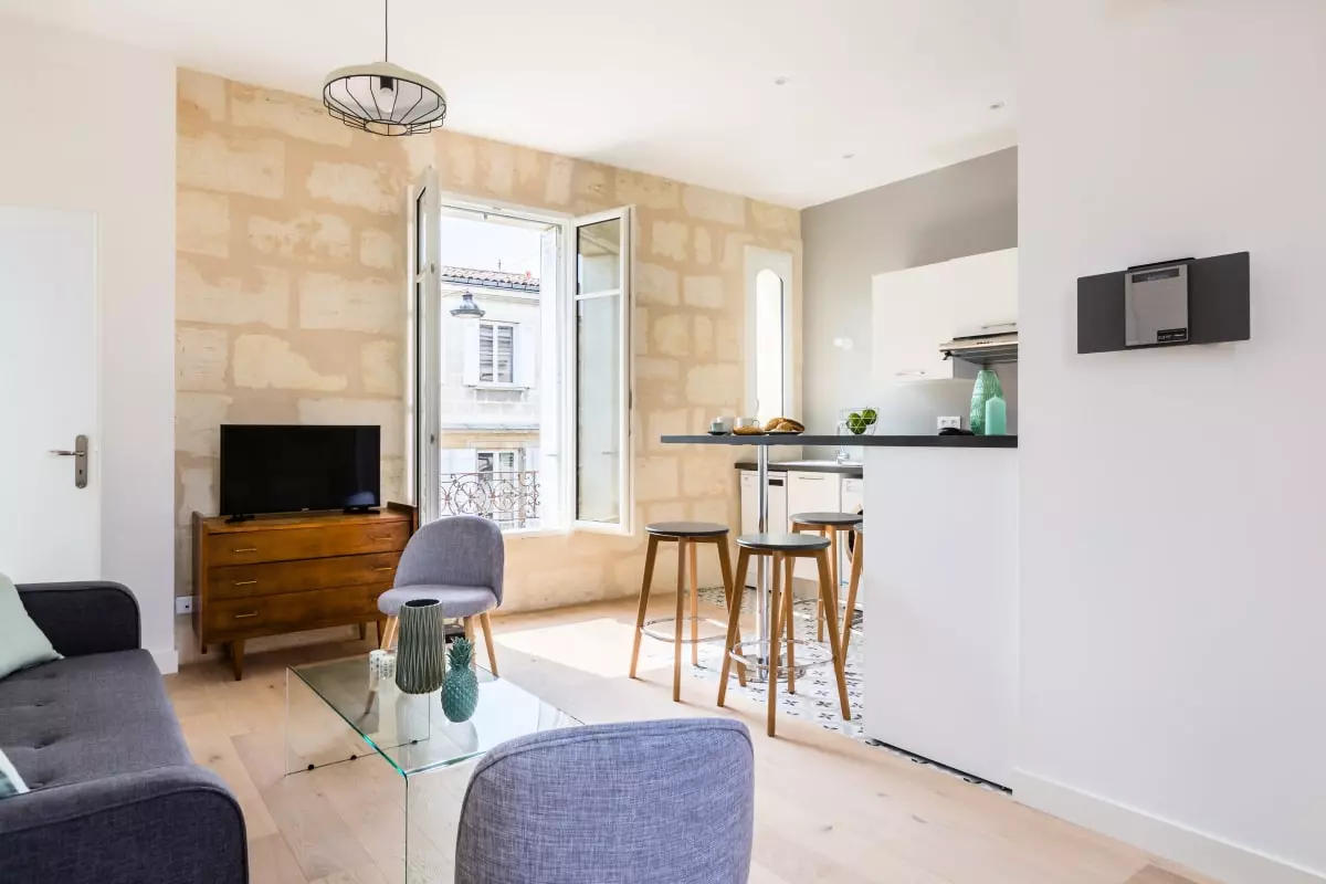 Nestled in the heart of the renowned Chartrons district, our fully renovated 40 m² apartment invites you to an exceptional stay in Bordeaux. This elegant one-bedroom apartment combines the rich history of Bordeaux stone with modern decor, creating an atmosphere that is both refined and welcoming.