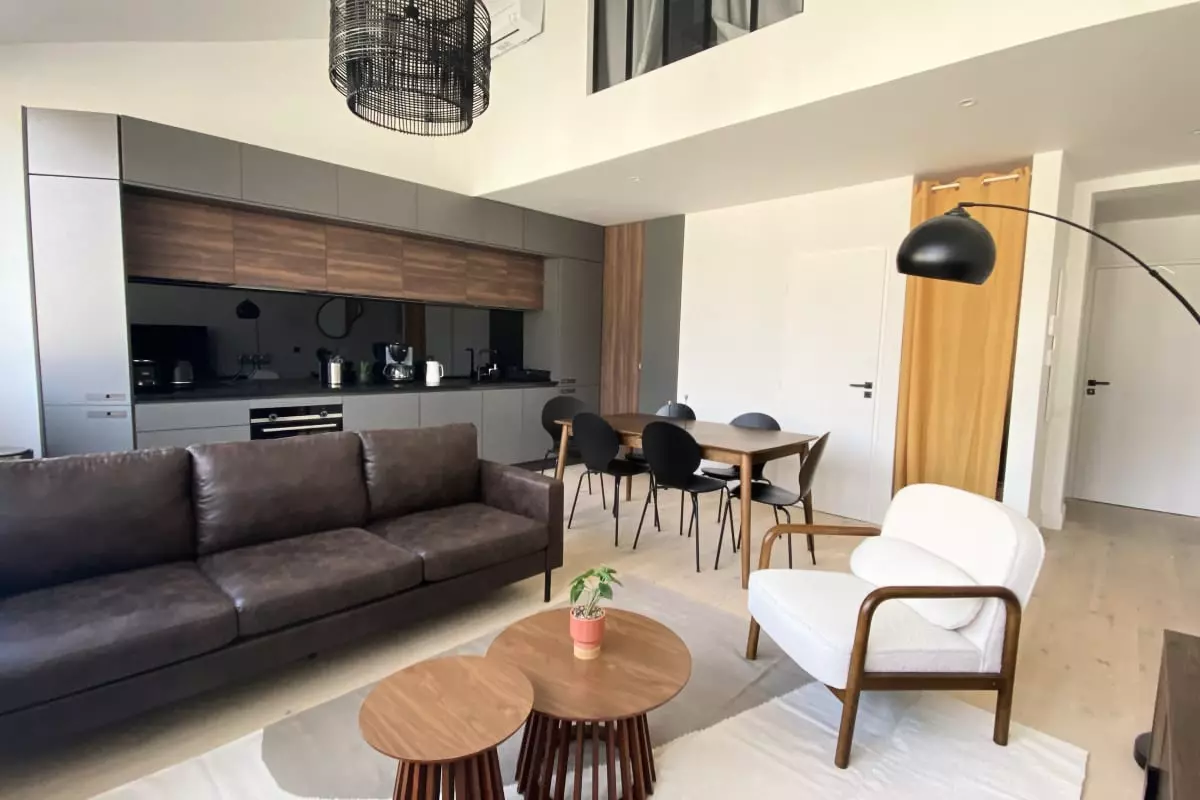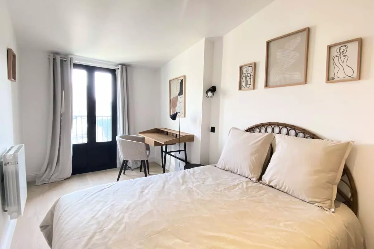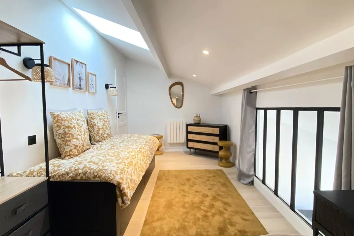 Come and settle into this cozy and welcoming apartment, nicely decorated in an urban and friendly atmosphere, organized around a bright living room with equipped kitchen, sofa ambiance and upholstered armchairs, 2 comfortable bedrooms, one furnished with a double bed and storage, the other with a sofa bed for 2 people. The bathroom is equipped with a walk-in shower, sink and heated towel rail. Coordinated and warm furnishings.