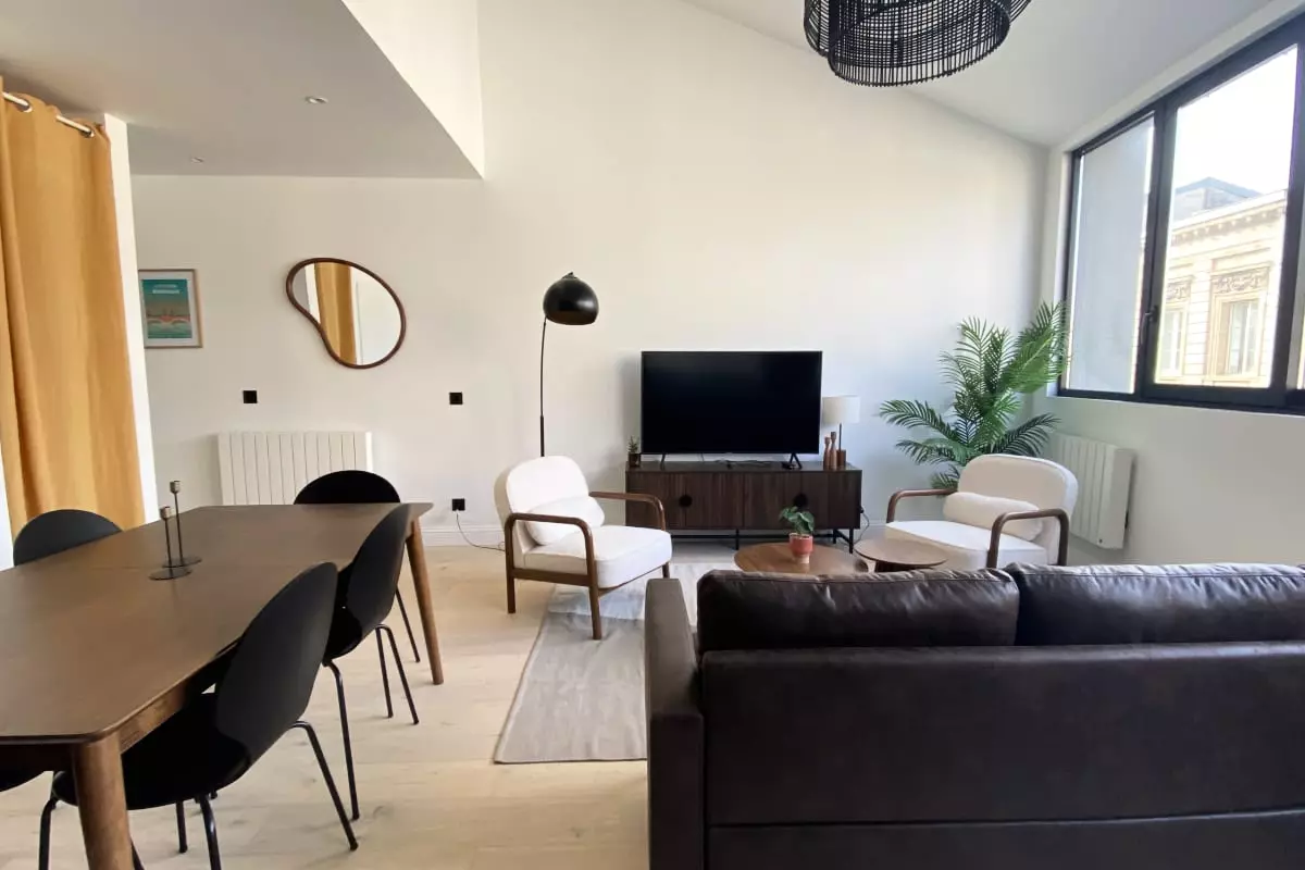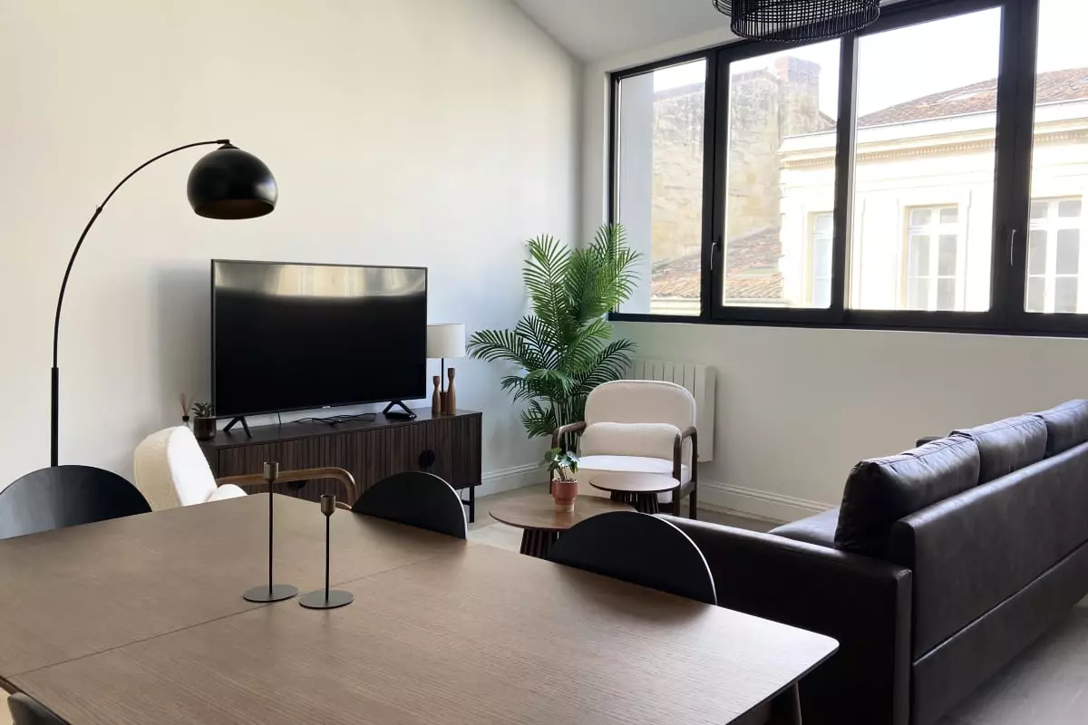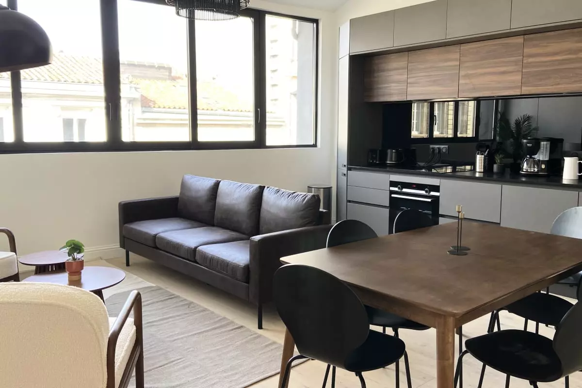 Located in the chic, attractive and pleasant district of Bordeaux in the heart of the Golden Triangle, you will have access to luxury shops, Michelin-starred restaurants and traditional brasseries such as Le Noailles, tourist activities, art museums such as the Bordeaux Museum of Fine Arts, the public garden, the Place de la Bourse, everything is within walking distance!
