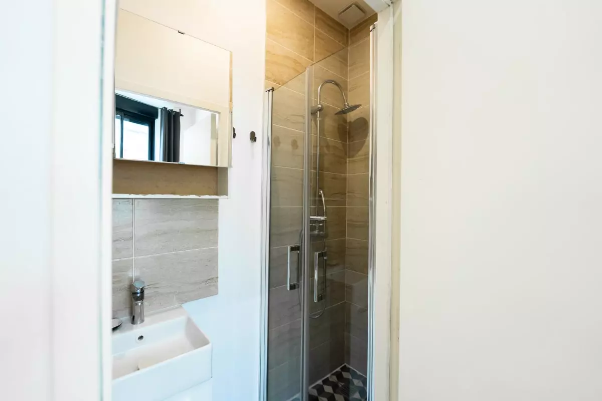 The studio is modern and bright. It has a large sofa bed (large enough for two adults) and can accommodate up to 2 people.