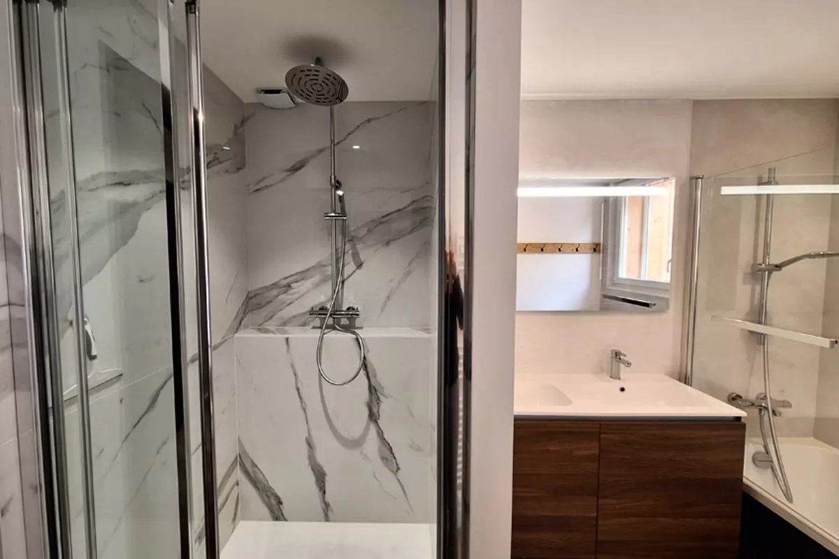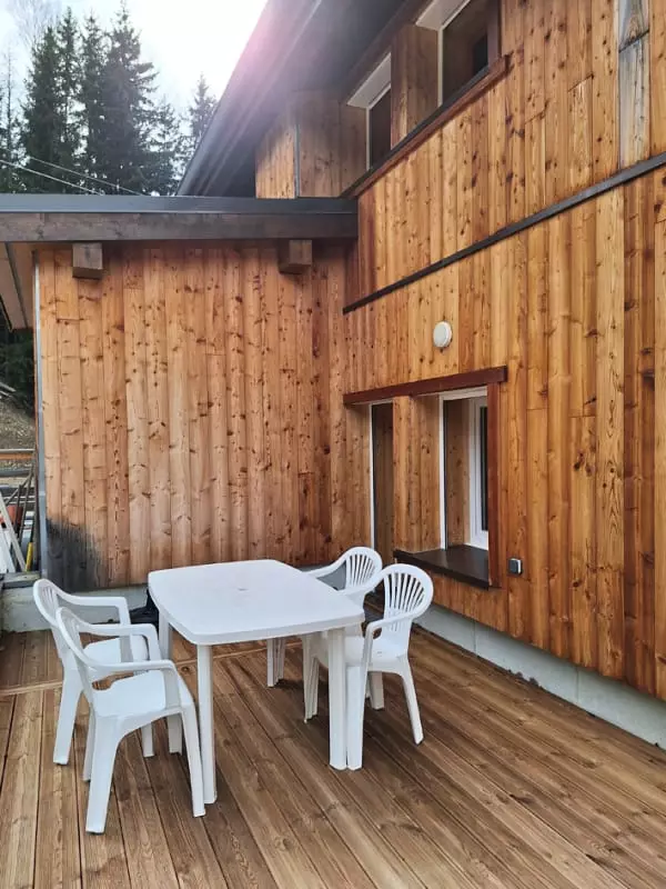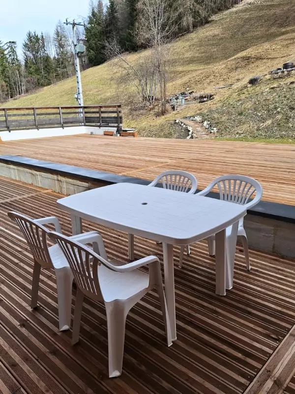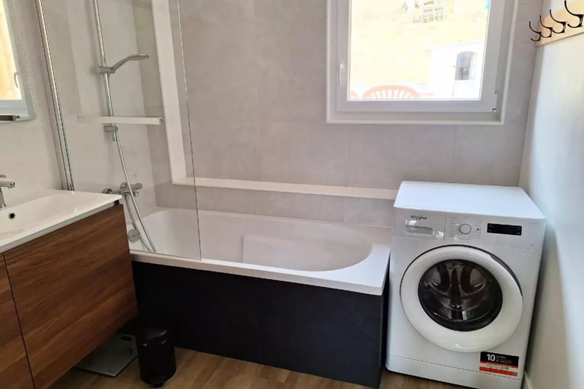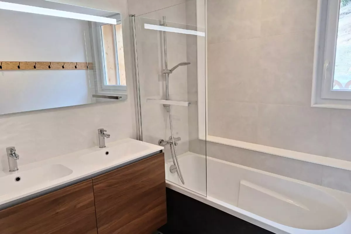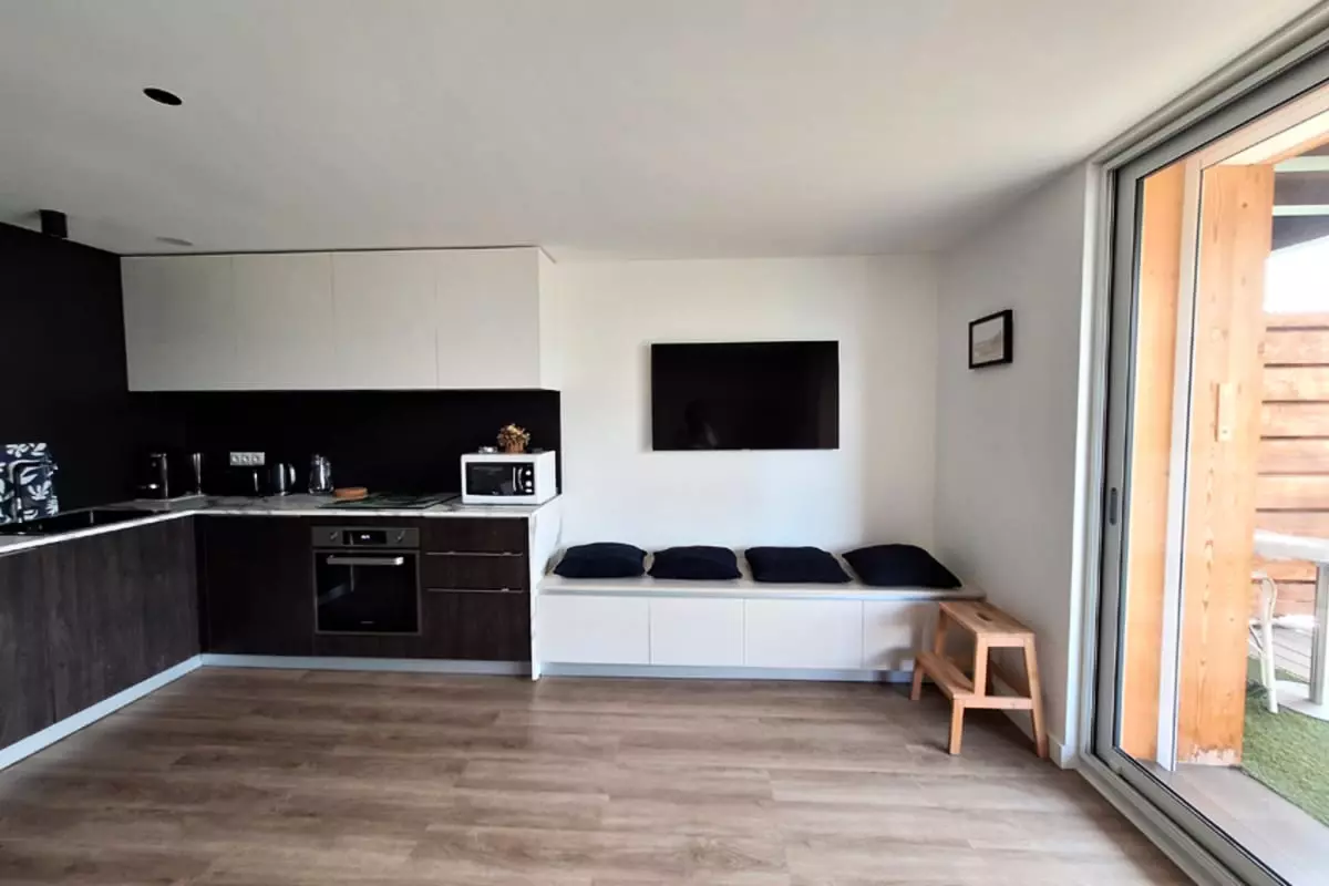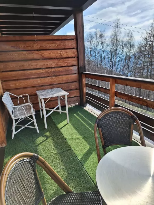 One of the apartment's strong points is its location. It's peaceful, surrounded by nature, trees, hiking trails, and mountain bike trails. Yet, it's just a 10-minute drive from all the town's amenities: shops, restaurants, a cinema, and a swimming pool. It's also a 2-minute funicular ride from the Arc 1600 resort and the entire Paradiski area.