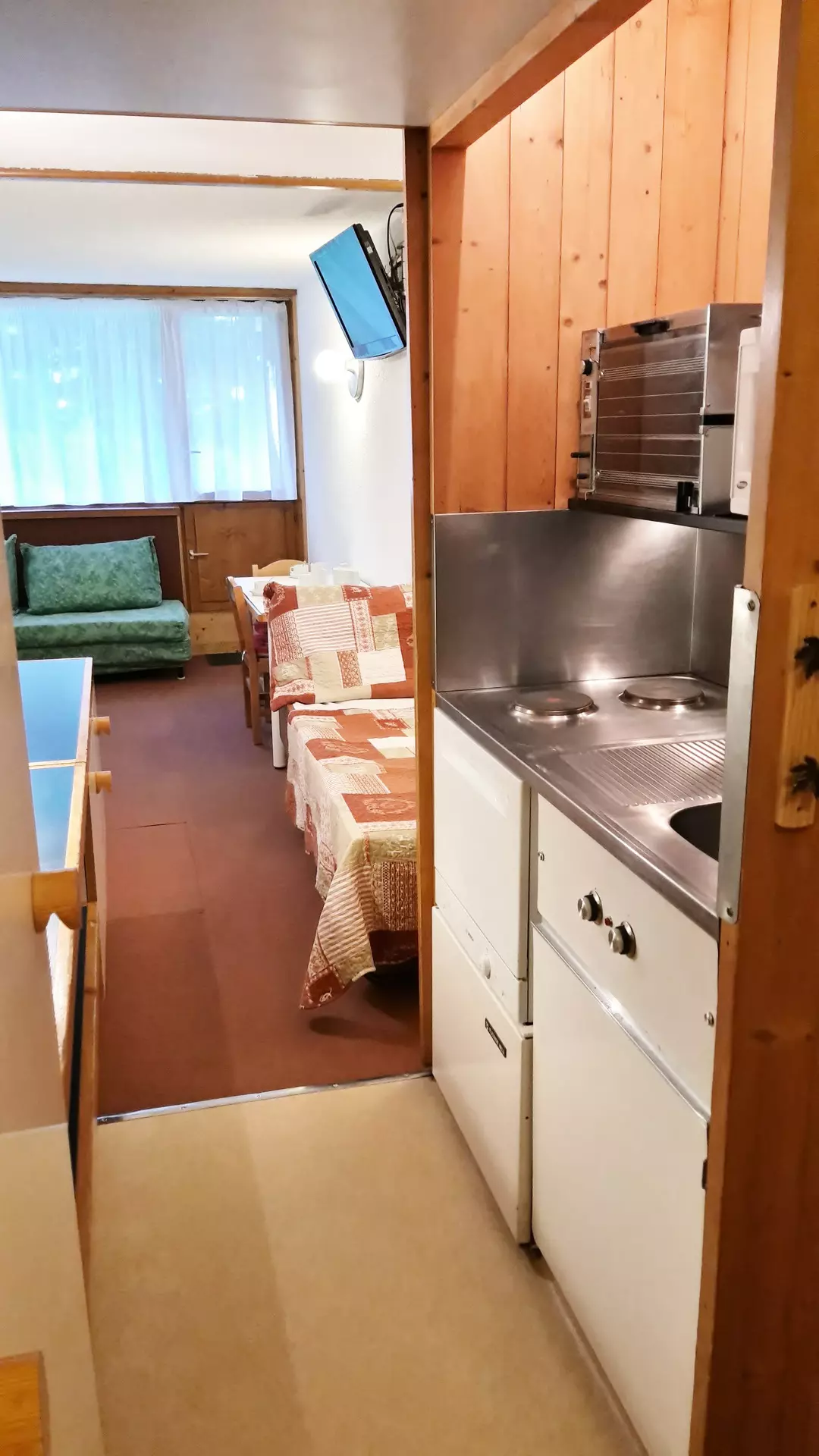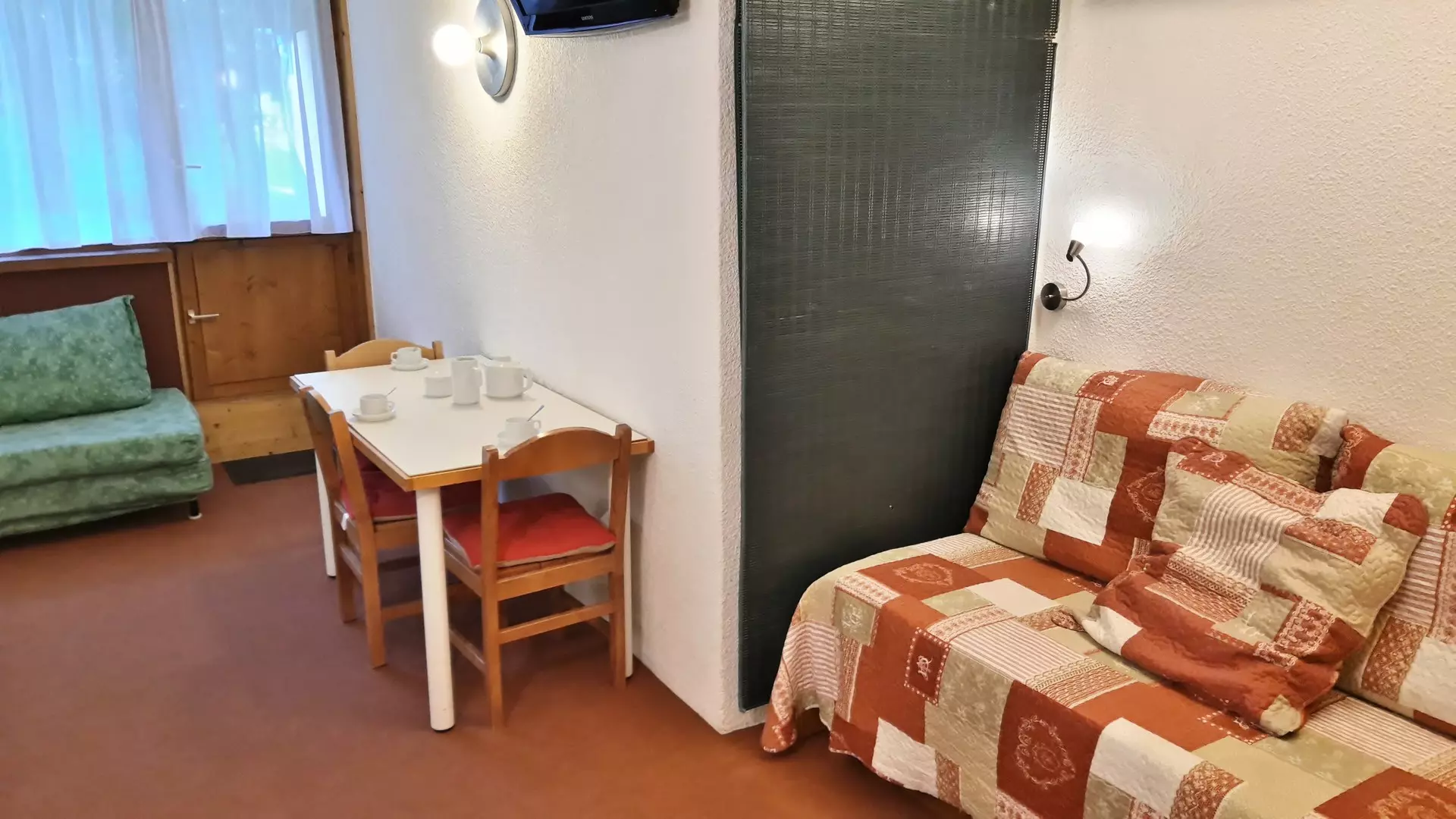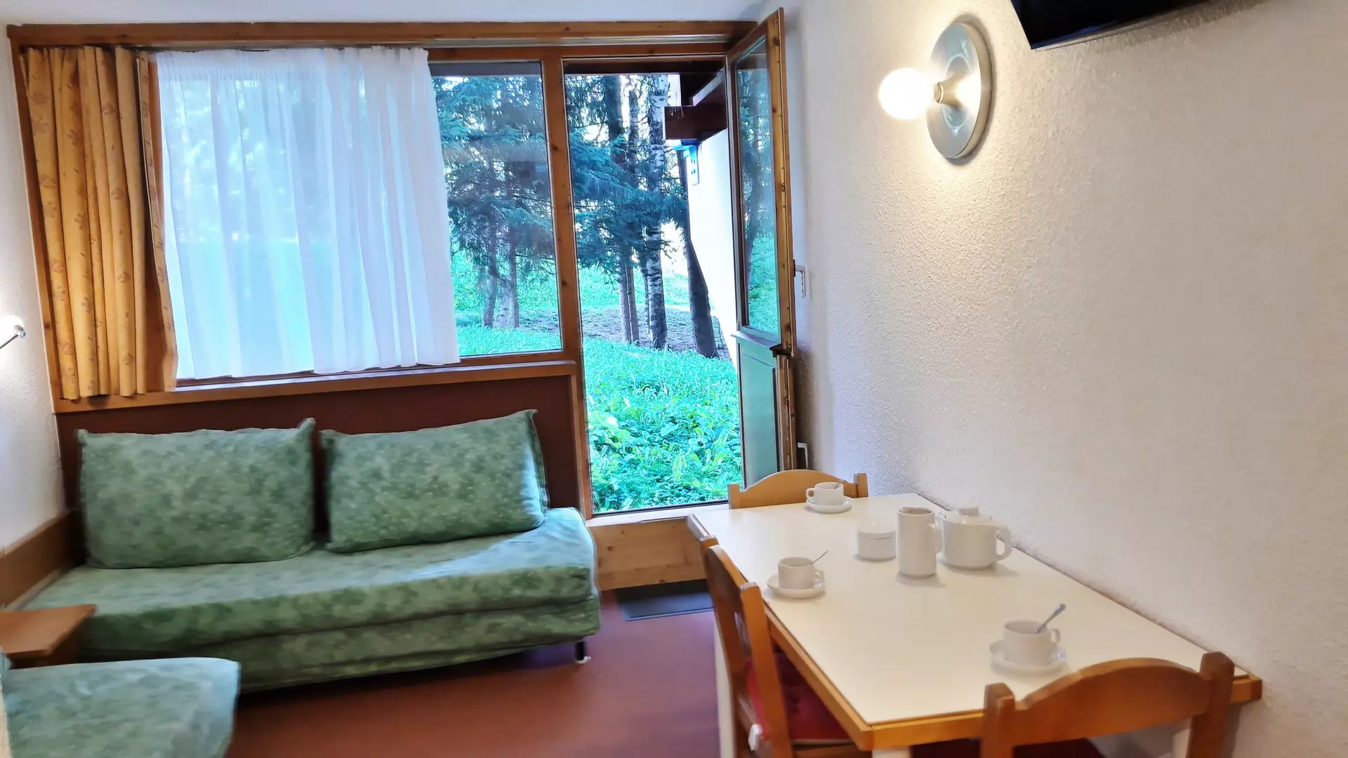 25m² studio cabin for 4 people, facing South-West, on the ground floor of the Belles Challes du Charvet residence, at the foot of the slopes and shops.