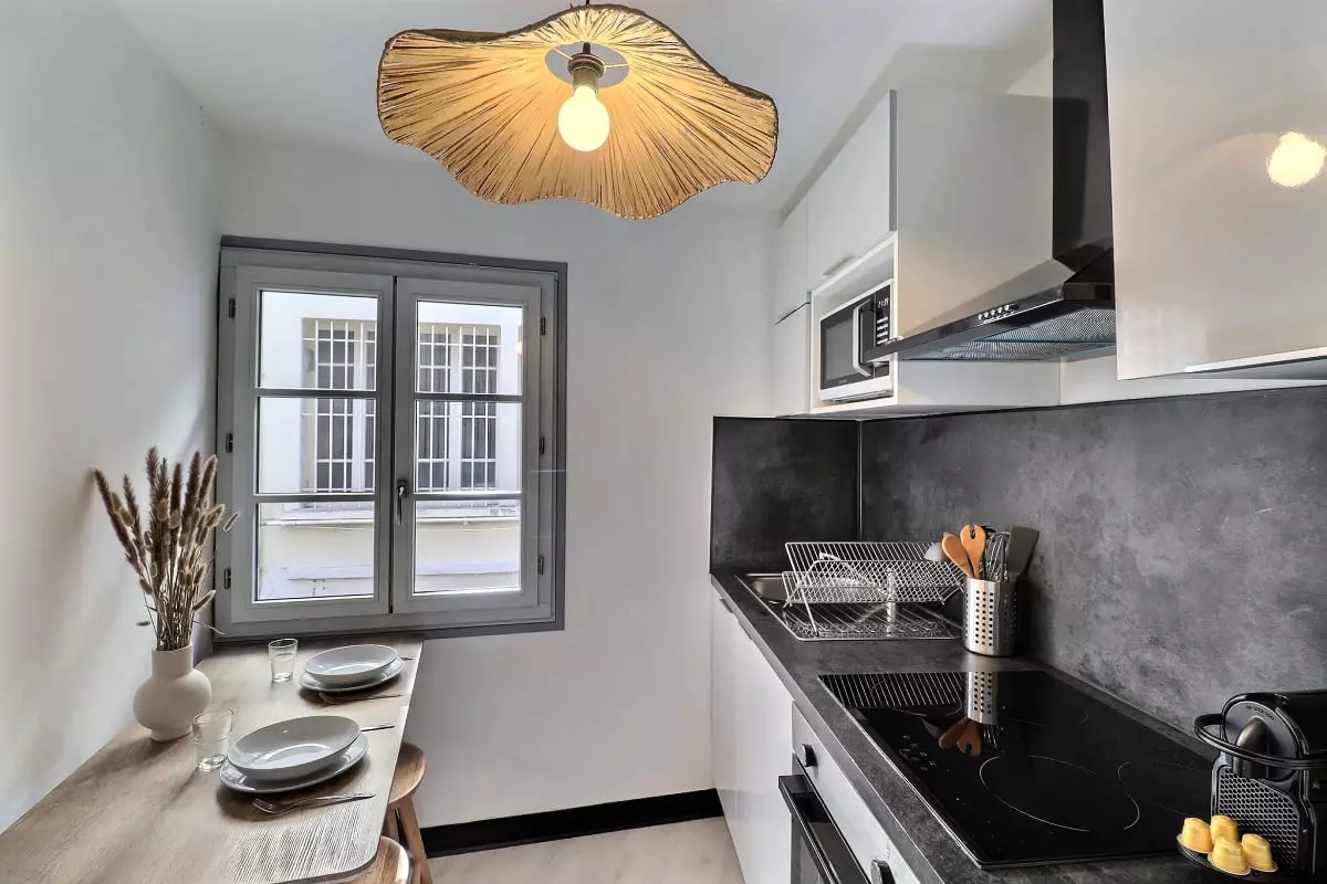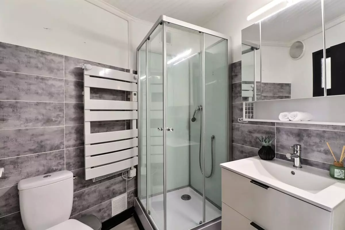 The separate, fully equipped kitchen offers the opportunity to prepare delicious meals inspired by Provençal flavors, as if you were seated at a sunny terrace of the Café de Nuit, immortalized by Van Gogh. The modern bathroom, with its spacious shower, completes this cocoon of well-being.
