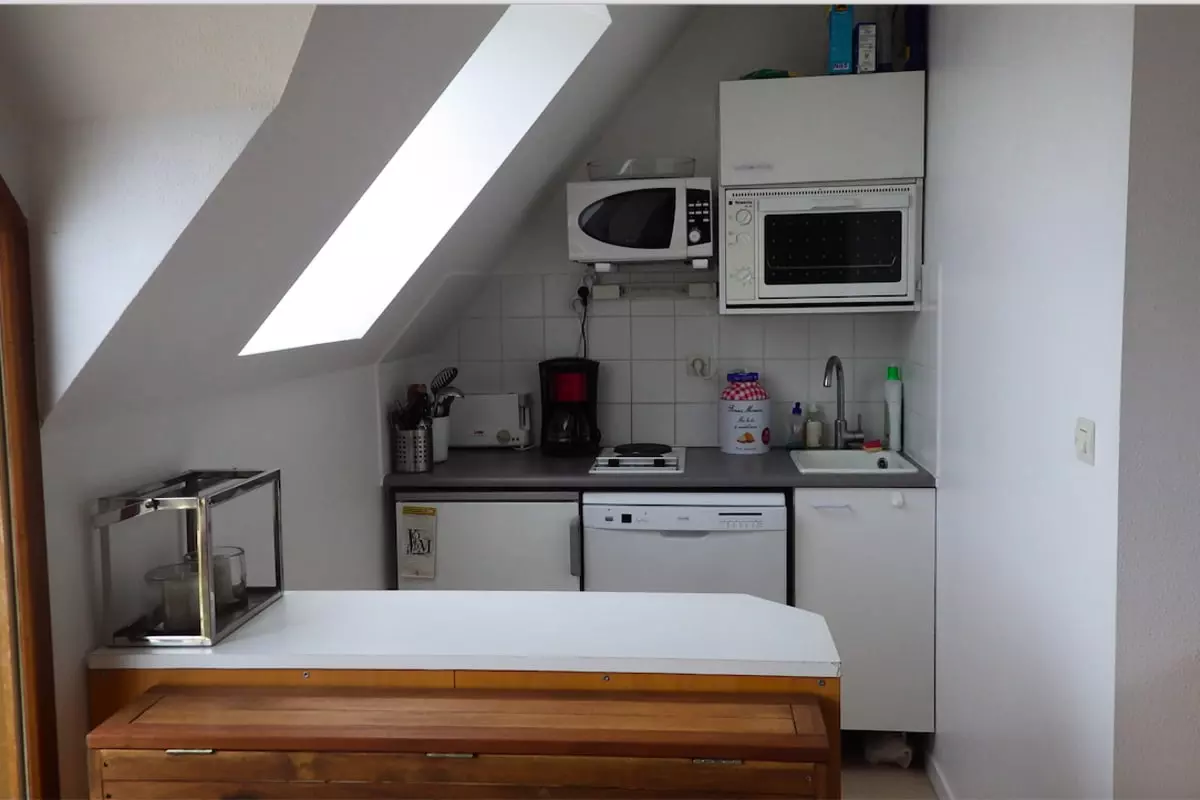 The accommodation, located on the 3rd floor without elevator, is fully equipped and perfectly suited for a tourist stay. Its amenities include a coffee machine (electric and Nespresso), an oven, a microwave, a flat-screen TV, and two ceramic hobs.