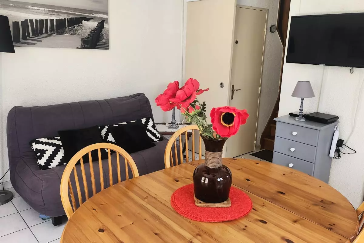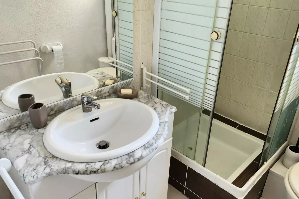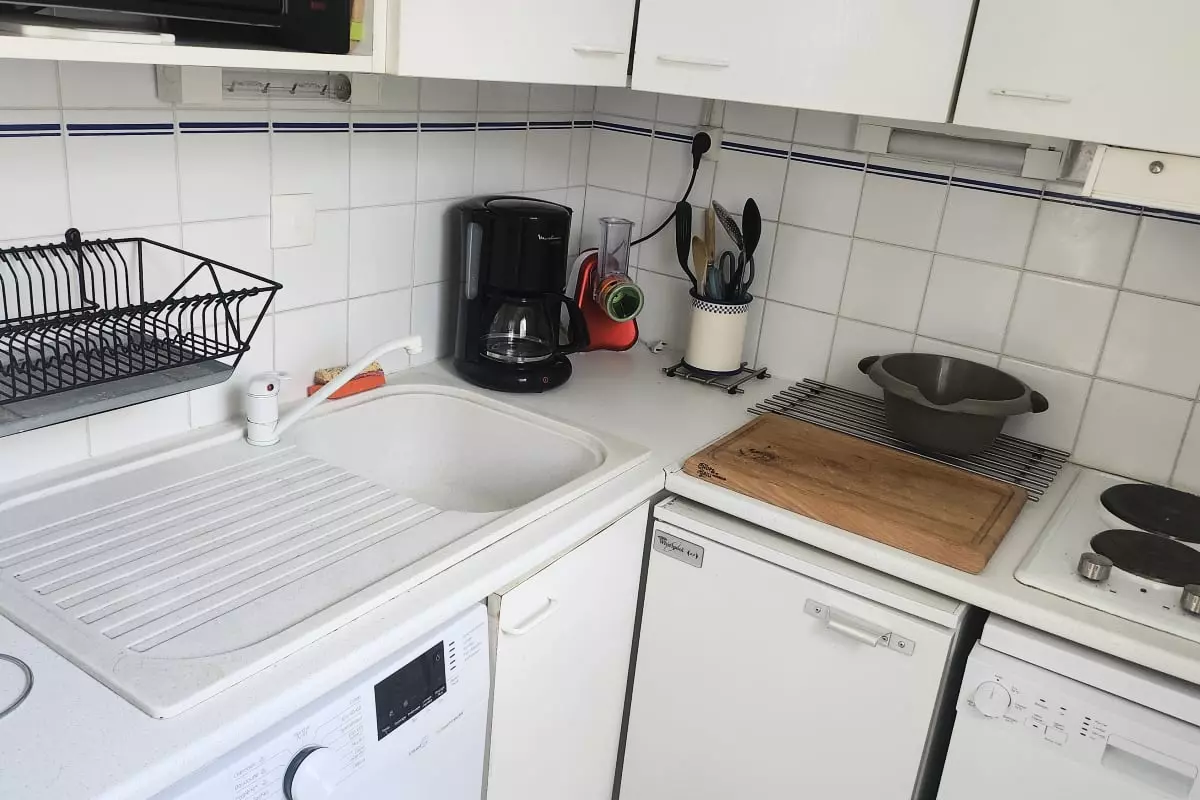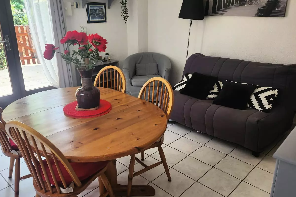 Inside, you'll find a bright and well-appointed space, including two comfortable bedrooms, a cozy living room with a TV, and a fully equipped kitchen with all the amenities you need to prepare your meals: oven, microwave, dishwasher, and coffee machine. The house also features Wi-Fi to stay connected and a washing machine for your convenience. The bathroom is equipped with a hairdryer, and an iron is available to keep you looking impeccable throughout your stay.