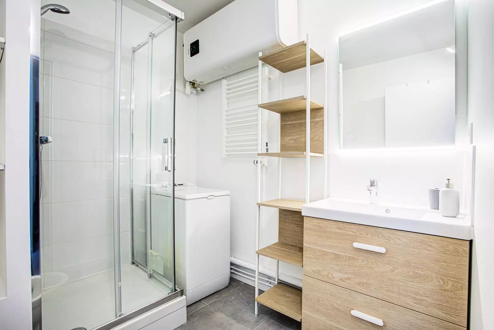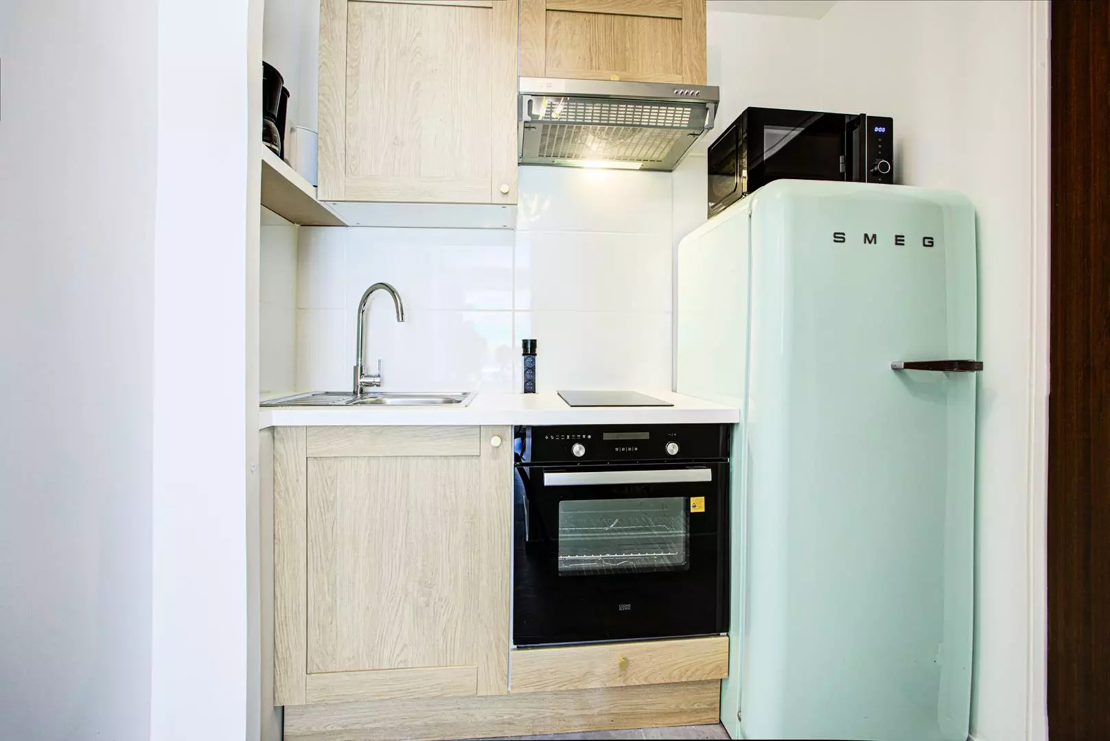 Located on the 1st floor with a terrace not overlooked, it consists of a kitchen equipped with washing machine, induction hob, multifunction oven, microwave, family coffee maker, kettle).